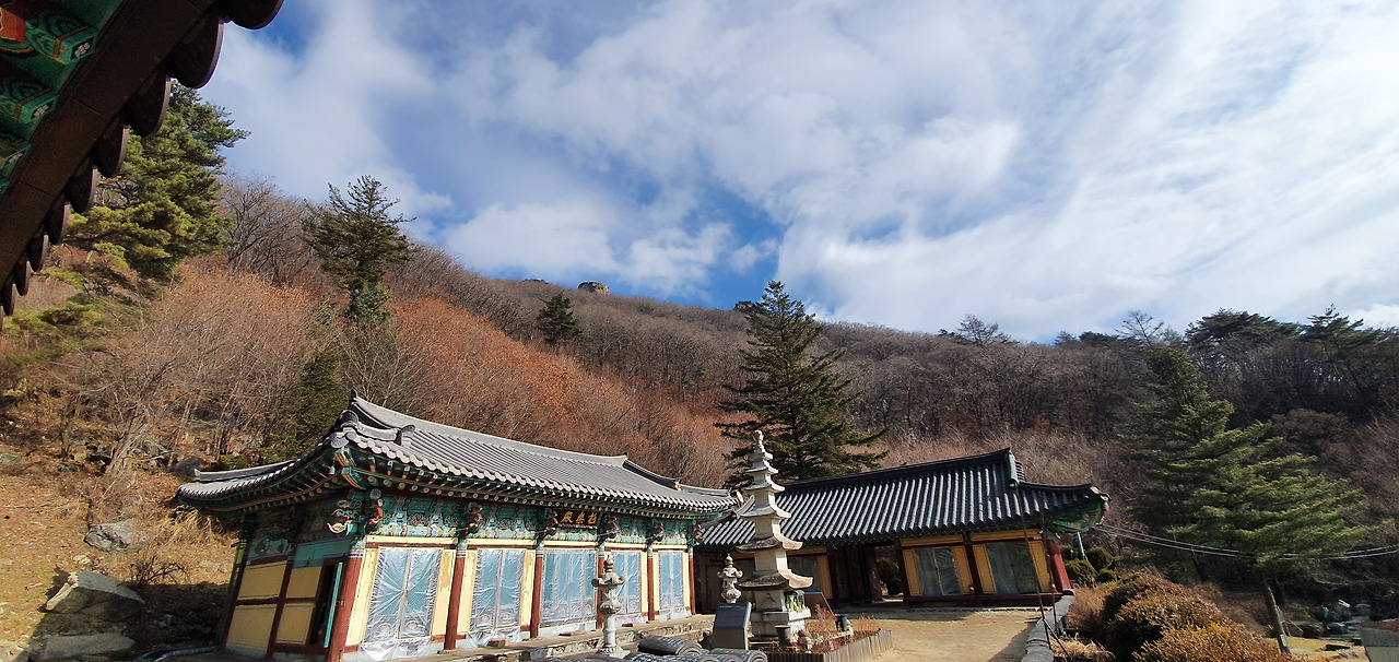 백련사가 1.4km라는 이정표가 있어 멀다고 느꼈는데 아니다. 400m에 불과하다. 누가 이정표를 잘못 세워 놓았다. 백련사는 신라시대에 이 자리에 세워졌으나 사찰이 계속 불타고 재건 과정을 거쳐 현재는 1957년 중창하였다고 설명이 되어 있다. 장소는 천하의 명당이라고 보아야 할 것이다. 절 앞에서 뒤를 보면 감악산이 안고 있다. 산 위의 일출봉과 월출봉이 하늘을 향해 손을 들고 있다.