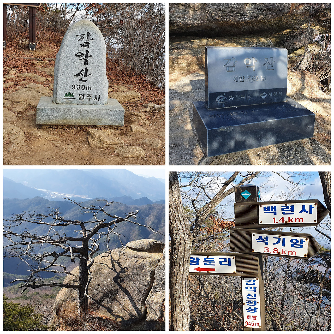 원주 제천의 감악산 4시간 남짓 산행에 파주의 감악산 산행에 버금가는 감동을 받았다. 산불감시기간이 종료된 후 또 다른 등산로를 이용해 올라보고픈 산이다.