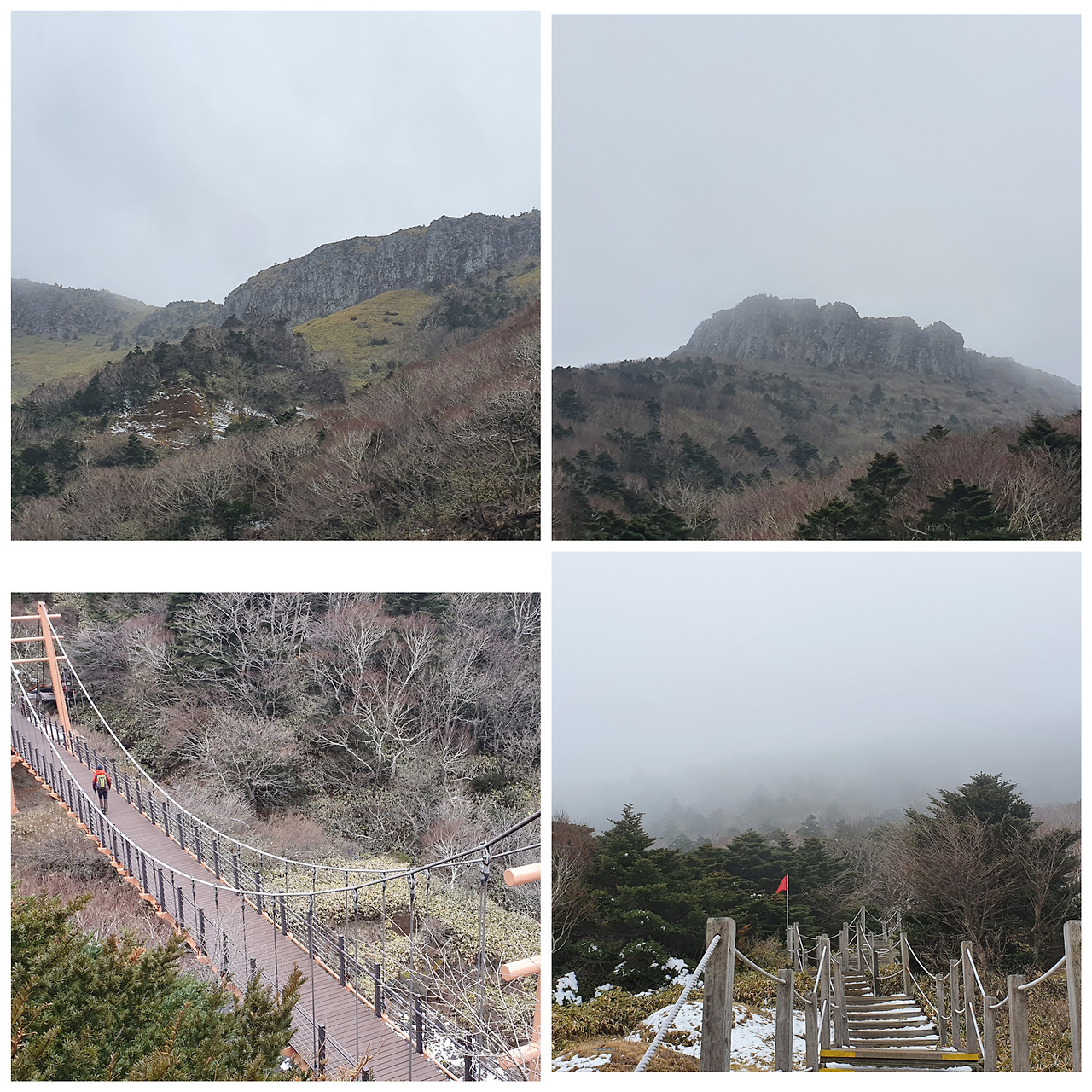 관음사 쪽은 눈꽃을 만들 정도로 약한 눈이 왔는데 성판악 쪽은 이슬비가 내린다. 같은 한라산이지만 기후변화가 참 많다.