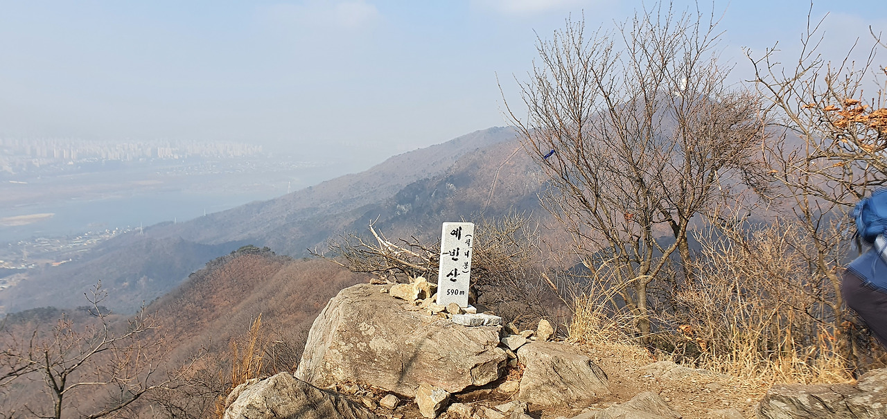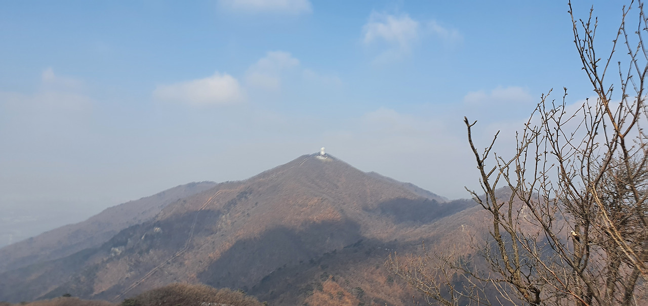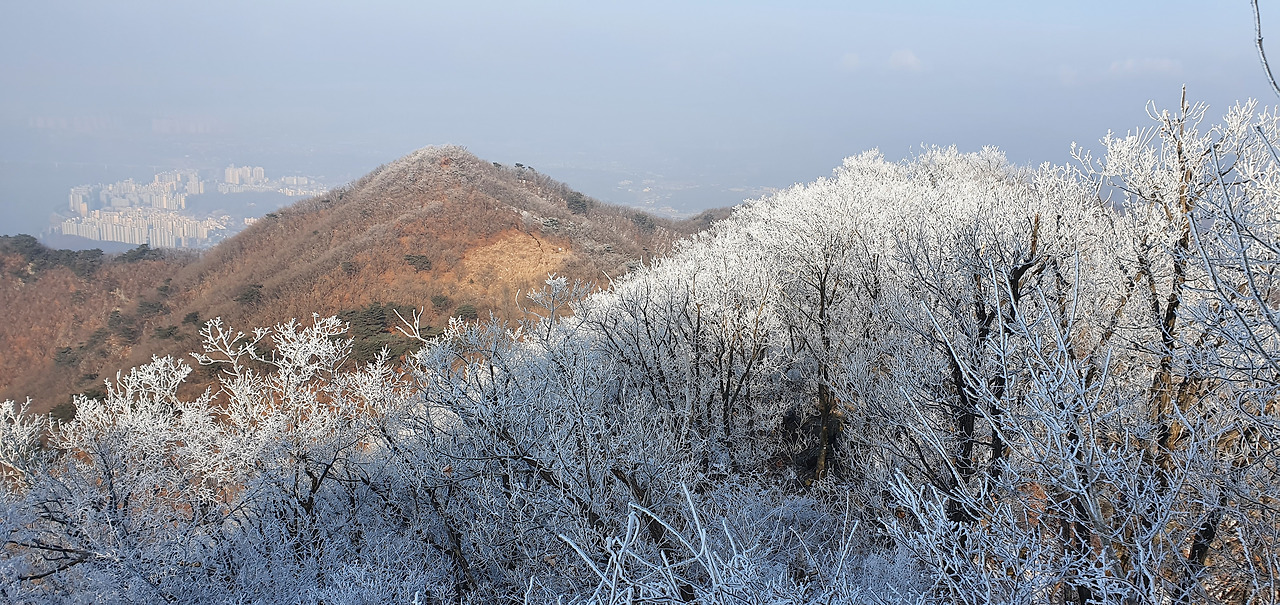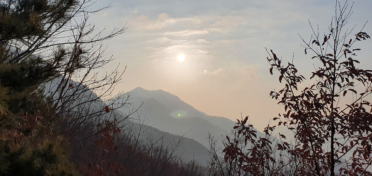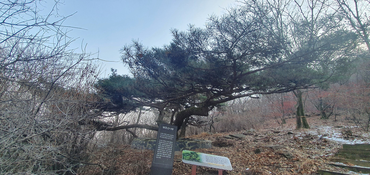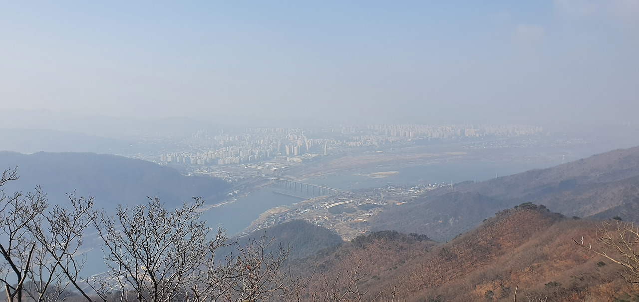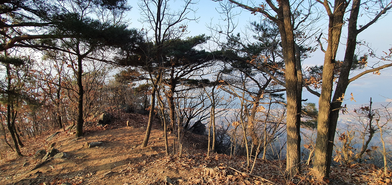 미세먼지가 앞을 가려서 그렇지 등산로를 오르면서 바라보는 경치는 일품이라고 할 수 있다. 여름이라면 소나무 숲과 절벽이 있는 저 구간에서 한참을 쉬어갈 수 있지만 겨울이라 그렇게 할 수 없어 아쉬울 뿐이다.