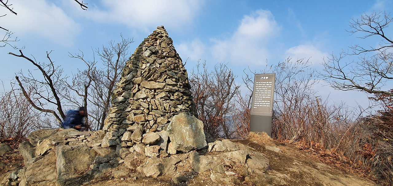 견우 봉이다. 직녀봉에서 능선길로 이어져 있다, 상정상 표지석에는 견우와 직녀 오작교 이야기를 풀어놓았다. 견우봉에는 돌탑이 조성되어 있고 직녀봉은 넓은 공터가 있을 뿐이다