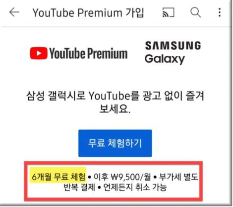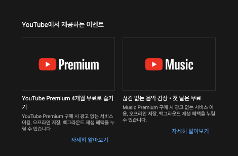 유튜브 프리미엄 4-6개월 무료 이용권 이용하기