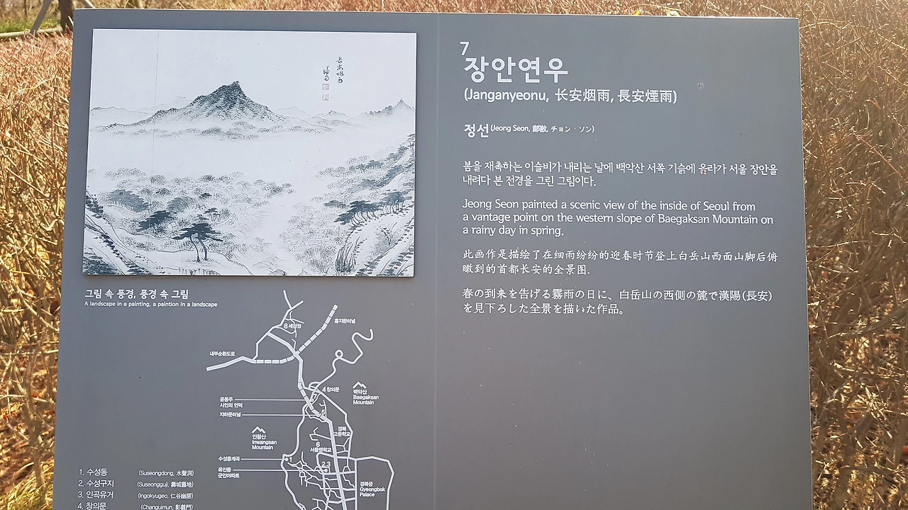 창의문에 도착하기 전 윤동주 시인의 언덕이 있다. 윤동주는 연희전문학교 재학 시절 종로구 누상동에서 하숙했다고 한다. 종로구에서 이곳에 윤동주 언덕이라고 명명하고 윤동주 문학관도 만들어 두었다. 이곳에 시비가 있다. 우리는 무엇인가의 인연에 의하여 스토리텔링을 만든다. 이곳에서 하숙을 하였다고 하여서 윤동주와 관련된 다양한 시설을 만든 것이다.