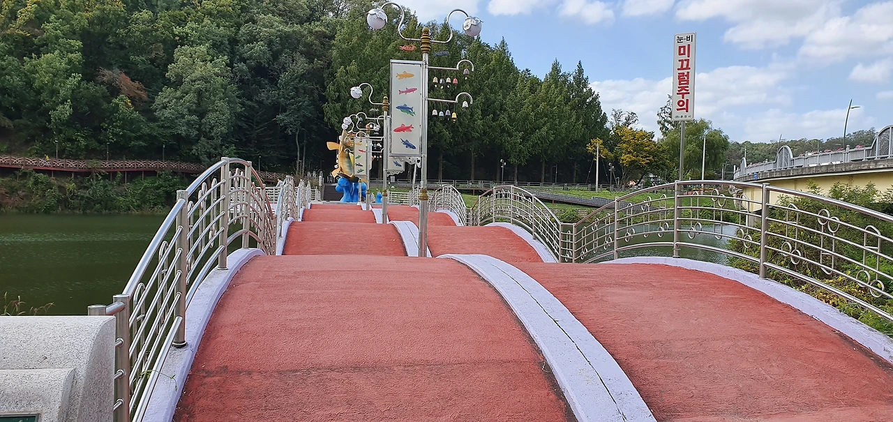 풍물시장이 끝나는 지점에서 공지천을 따라 걸으면서 공지천의 맛을 보는 것이 좋다고 본다. 공지천이 예전에는 생활오수도 있었는데 생활오수를 이제는 분리하여 운영하고 있어 이제는 의암호의 그 깨끗함을 그대로 볼 수 있다고 보아야 할 것이다. 공지천과 의암호가 만나는 지점에는 조각상이 있다. 다리도 멋있다.