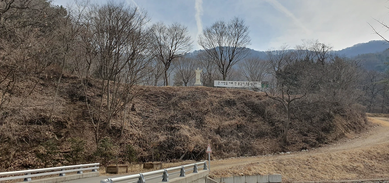 은이성지를 지나고 처음 만나는 고개에서 넘어가면 와우정사 왼쪽으로 가면 미리내 성지로 가는 길이다.