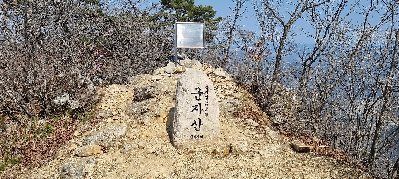 군자산은 국립공원이지만 사람들이 많이 찾지 않아서 그런지 등로가 그렇게 관리되지 않고 있어서 있는 모습 그대로 등산로가 있다고 보아야 할 것이다. 험한 산을 오르면서 데크로 된 계단은 1번쯤 있었는 것 같다.