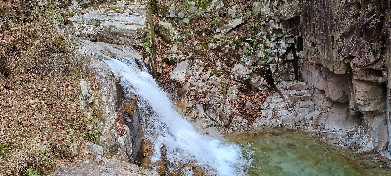 쌍곡폭포다. 처음으로 이정표에 폭포라고 이름이 붙여진 곳이 나타났다. 우렁찬 소리도 나고 폭포 앞에 넓은 소가 폭포의 힘을 느끼기 한다. 시원한 여름을 그대로 느끼기에 충분한데, 폭포를 보라는 것인지 아니면 폭포가 있다는 것을 표시하는 것인지 모르게 폭포 근처에 안전지대가 설치되어 있었다.