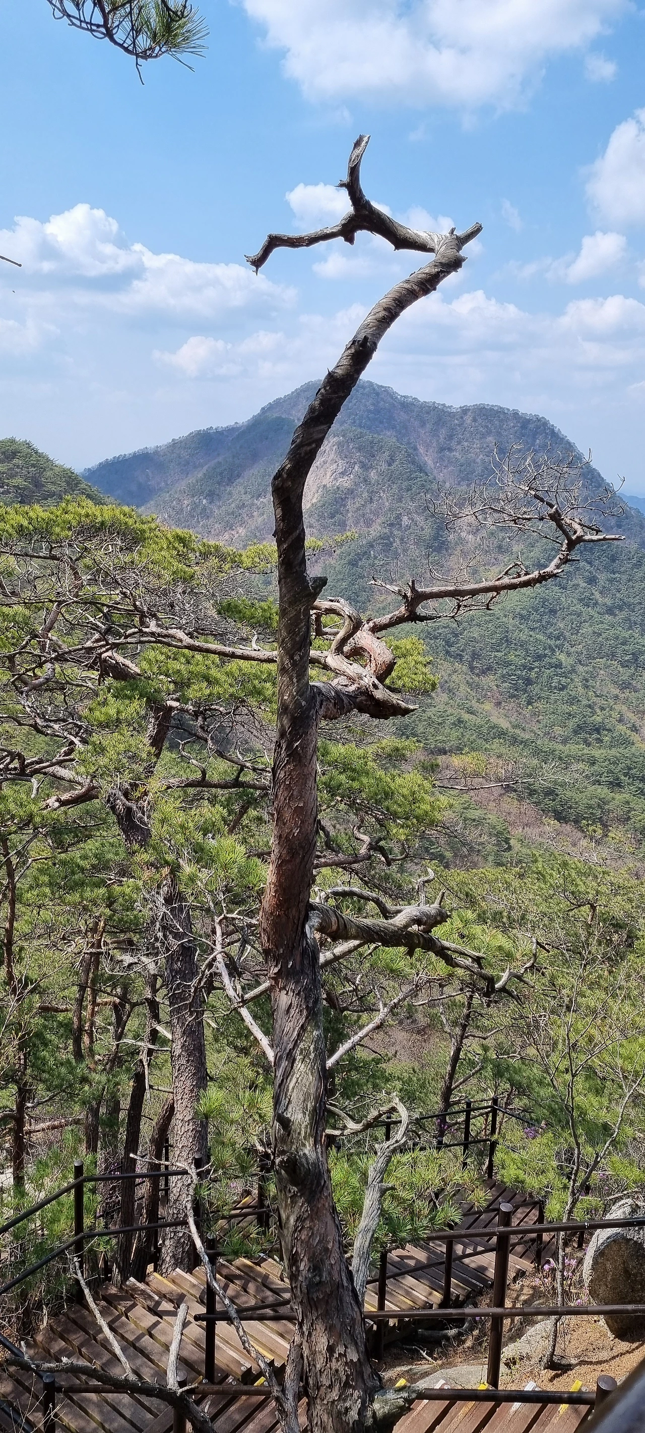 내려오면서 노송이 멋있다. 같이 움직이시는 분이 "저 소나무는 10억은 넘겠어요. 저 소나무가 정원에 있으면 정원 자체가 산이라고 볼 수 있겠네요". 멋진 소나무가 우리 앞에서 자태를 뽐내고 있다. 하산이 중요하다고 할 수 있다. 하산을 하면서 이렇게 멋있는 소나무를 보았다는 것에 그저 즐거울 뿐이다.