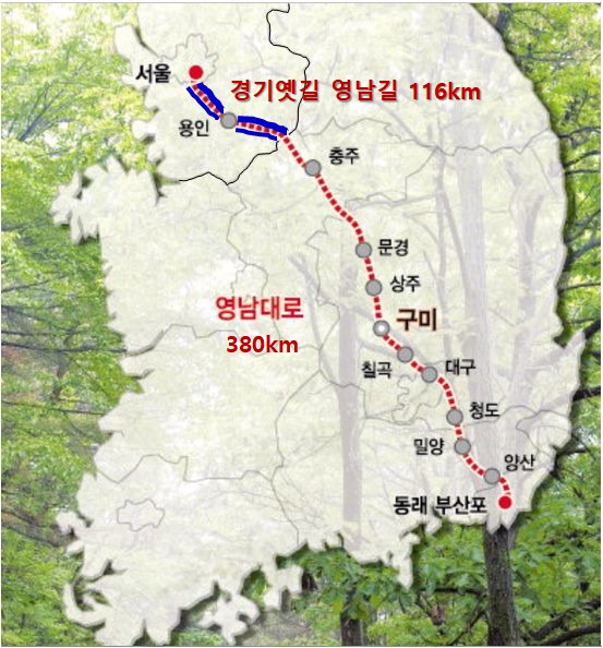 경기 옛길 영남길은 10코스로 정리되어 있다. 경기도에 나름 고민을 하여 코스를 탈출하는 지점과 시작 지점에 대중교통을 연계시켜 놓았다.
