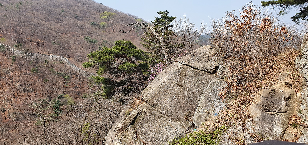 옹성을 나가는 암문을 통해나가 보니 햇빛을 쬐고 있는 나무가 그 자리를 지키고 있다. 장경사 쪽으로 접근하는 적을 공격할 수 있는 옹성이다.