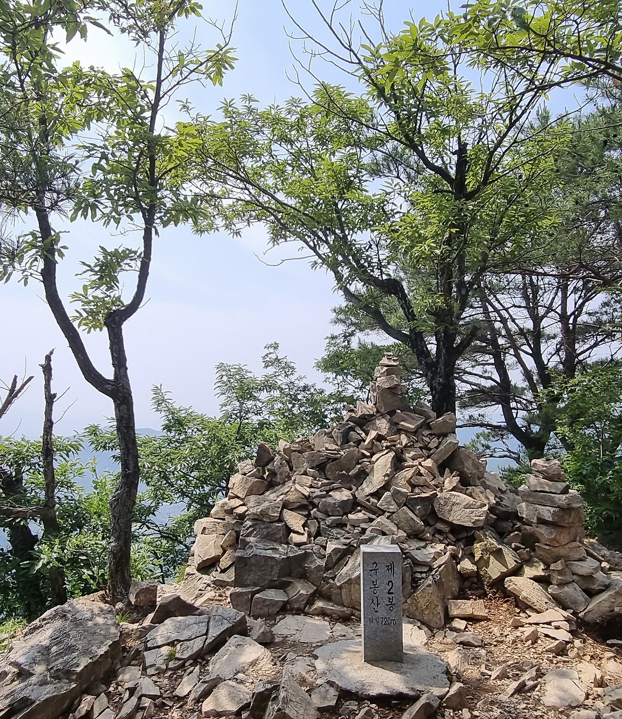 2봉으로 간다. 2봉으로 가기 위하여 100m를 돌아가서 다시 오른다. 데크가 어렵게 오르던 길을 편안하게 만들어 놓았다. 2봉에서는 전망은 없고 3봉을 바라볼 수 있으며 멀리 구봉까지 흐름을 볼 수 있다.