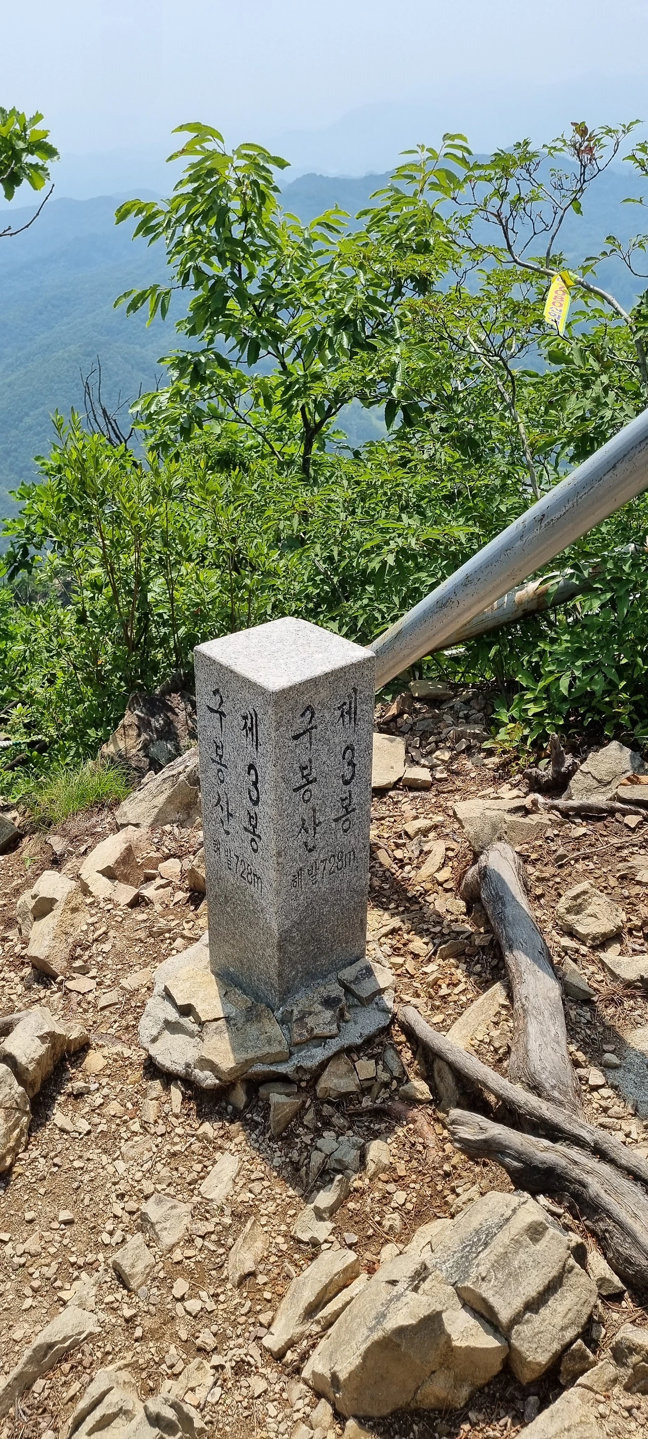 3봉은 4봉을 가면서 지나치는 길에 3봉이다. 정상석도 잘 서 있다. 4봉의 구름정이 보인다. 사람들이 정상석을 인증하면서 손가락 3개를 편다. 4봉에서 3봉을 바라볼 수 있다.