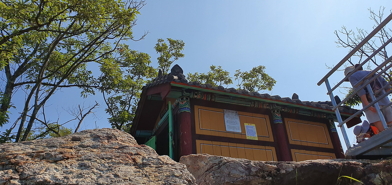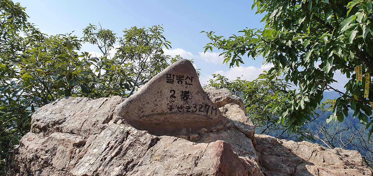 2봉을 올라선다. 2봉이 주봉이라고 한다. 327m 표시가 있다. 2봉에는 당이 두 개가 있다. 사실 이것을 보고 자연스러운 현상이라고 하기도 한다. 양심의 자유 문제가 항상 대두된다. 종교적 색안경을 끼면 안 되는데 항상 쓰고 있다. 존재 자체를 부정하지 않는다. 이곳에 있는 당이 무엇을 하고 무엇에 쓰이는지 알고 있다. 기본적으로 철성당이 있다. 내가 서 있는 곳에서 과거에는 이를 용납하고 기도도 하였다. 하지만 지금은 아니다. 내 종교도 누군가에게 강요는 하지 않는다. 이것이 양심의 자유다. 양심을 저버리는 행위는 아직도 나를 버리지 않고 있다. 이곳에는 삼부인신당이 있다. 400여 년 전에 이곳에 신당을 만들었다고 한다. 시어머니, 며느리, 딸을 신으로 모시고 있다. 그들에게 어떠한 능력이 있는지 모르겠다. 그들을 신으로 모시는 사람들 당집에서 잠을 자고 있고 재물을 권한다. 그중에 한 분은 깨어서 산객들과 이것저것 이야기도 한다. 산객들에게 힘겹게 가지고 온 제물을 나누어 준다. 나는 이러한 제물을 꺼린다. 종교 때문 이기도 하고 종교가 없던 어릴 적부터 이러한 것에 그렇게 애착도 없었고 그것에 대하여 거부감이 강하였다. 먹는 것이 귀하던 시절에도 집에서 굶고 있어도 동네 상갓집에 가서 밥을 먹지 않아 모친을 힘들게 한 것이 한두 번이 아닌 것으로 기억한다.