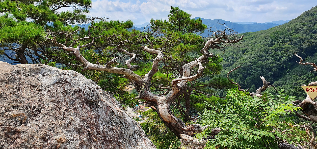 암릉이 만만치 않다. 암릉을 뚫고 올라온 소나무가 그 청초함을 뽐내고 있다. 나무뿌리의 그 무서움과 생명력을 엿볼 수 있다. 암릉을 오르는 계단이 없으면 이산은 오르기 힘들 것 같다. 어떤 이는 오를 수 있을 것이다. 입장료를 받는 이유를 알 것 같다. 스트레칭이 저절로 된다. 머리를 숙이고 다리를 번쩍번쩍 들어야 한다. 살짝만 들면 바위에 부딪힌다. 2봉보다 3봉이 오르기는 계단이 더 많다. 저 험난한 계단을 오를 수밖에 없다.