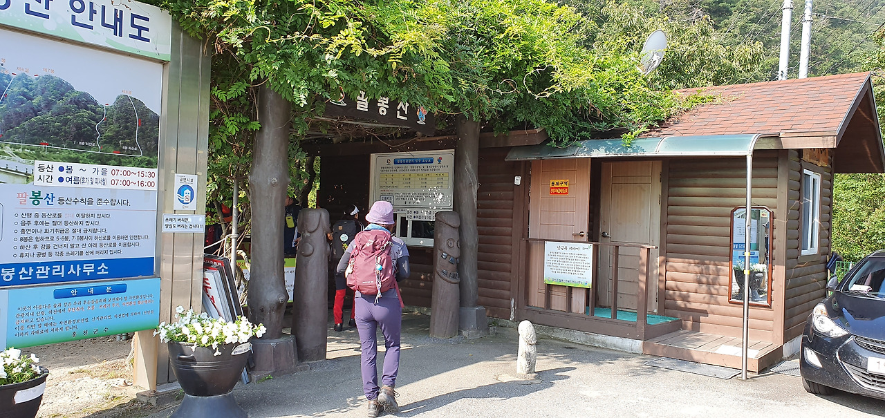 팔봉교를 건너면 다리 끝에 매표소가 있는데 매표소부터 산행이 시작되었다. 35분 정도면 1봉을 오르고 8봉까지 다음 봉우리를 오르는데 10-20분 정도 소요된다. 총 산행시간은 4시간 소요되었다. 마지막 8봉은 오르는 코스가 가파른 암릉인 데다 하산 코스도 급경사에 로프를 잡고 하산하는 코스로 어려움이 있었다.