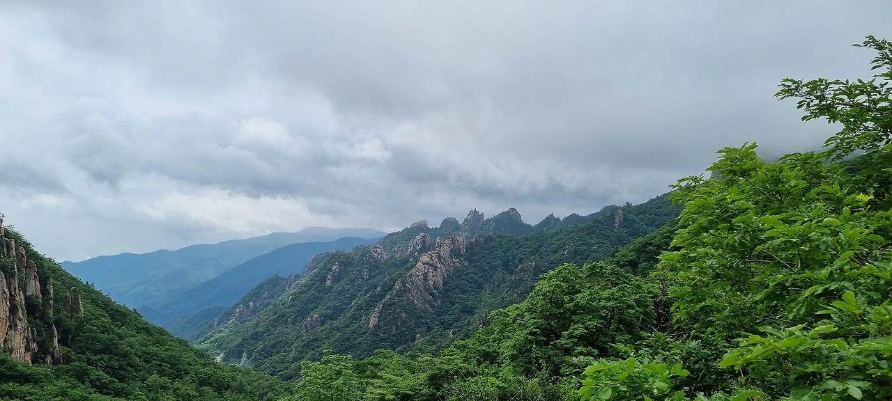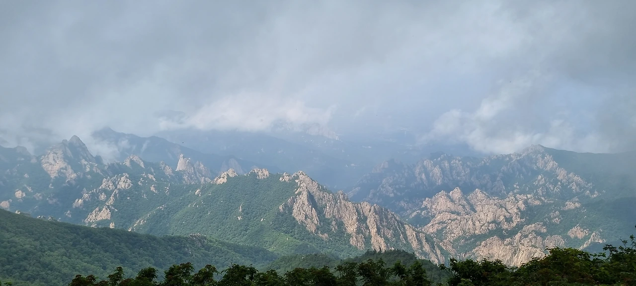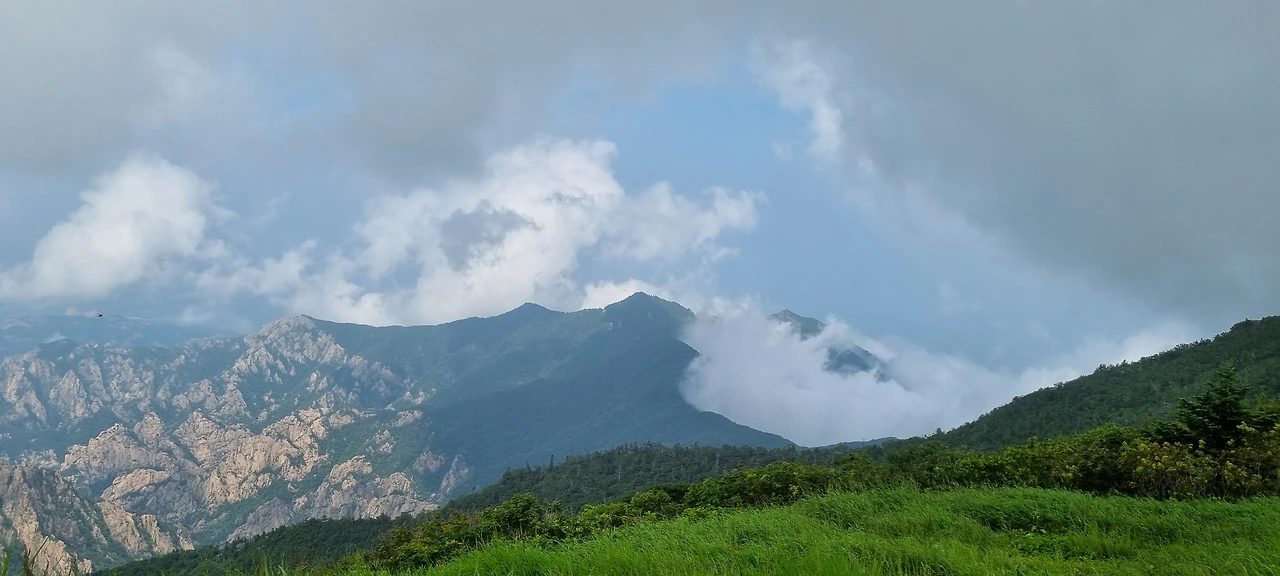 오후 4시경 비 예보가 있다. 구름이 산세를 보여주었다가 산을 숨긴다. 멋진 풍광은 잠시 보여줄 때 잘 보아야 한다. 한계삼거리를 1시간 이내에 가야 여유가 있다.