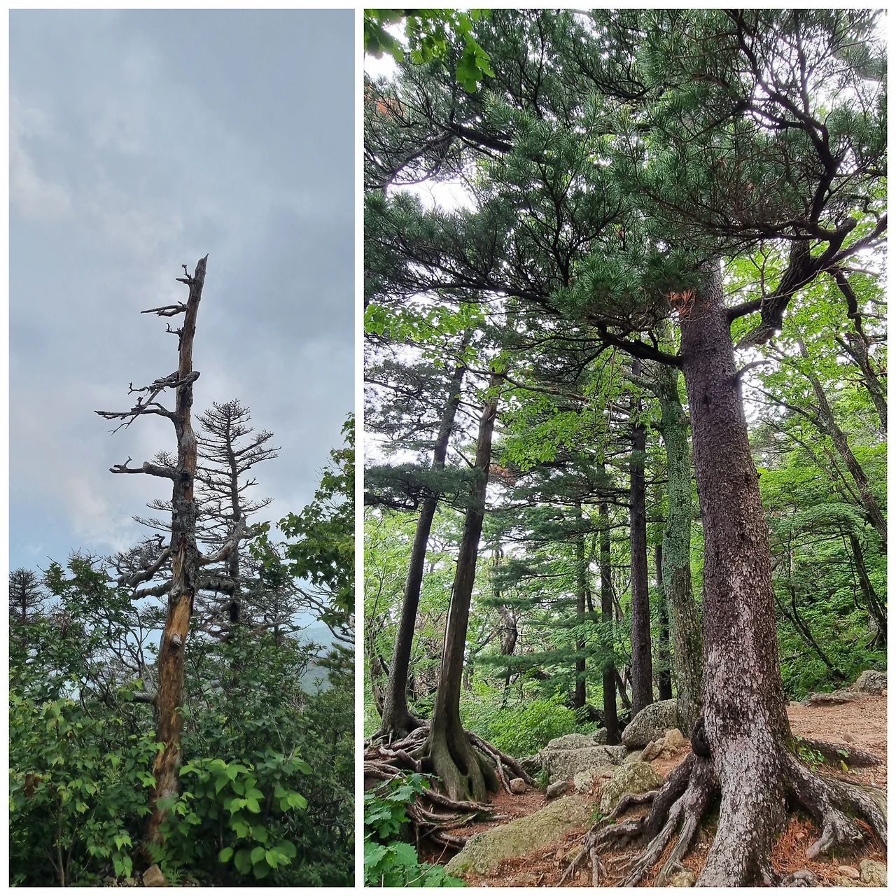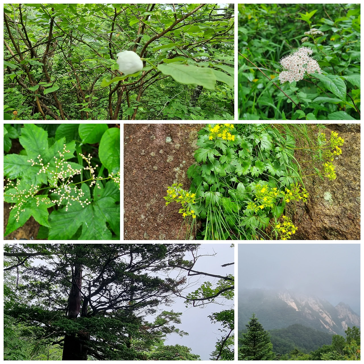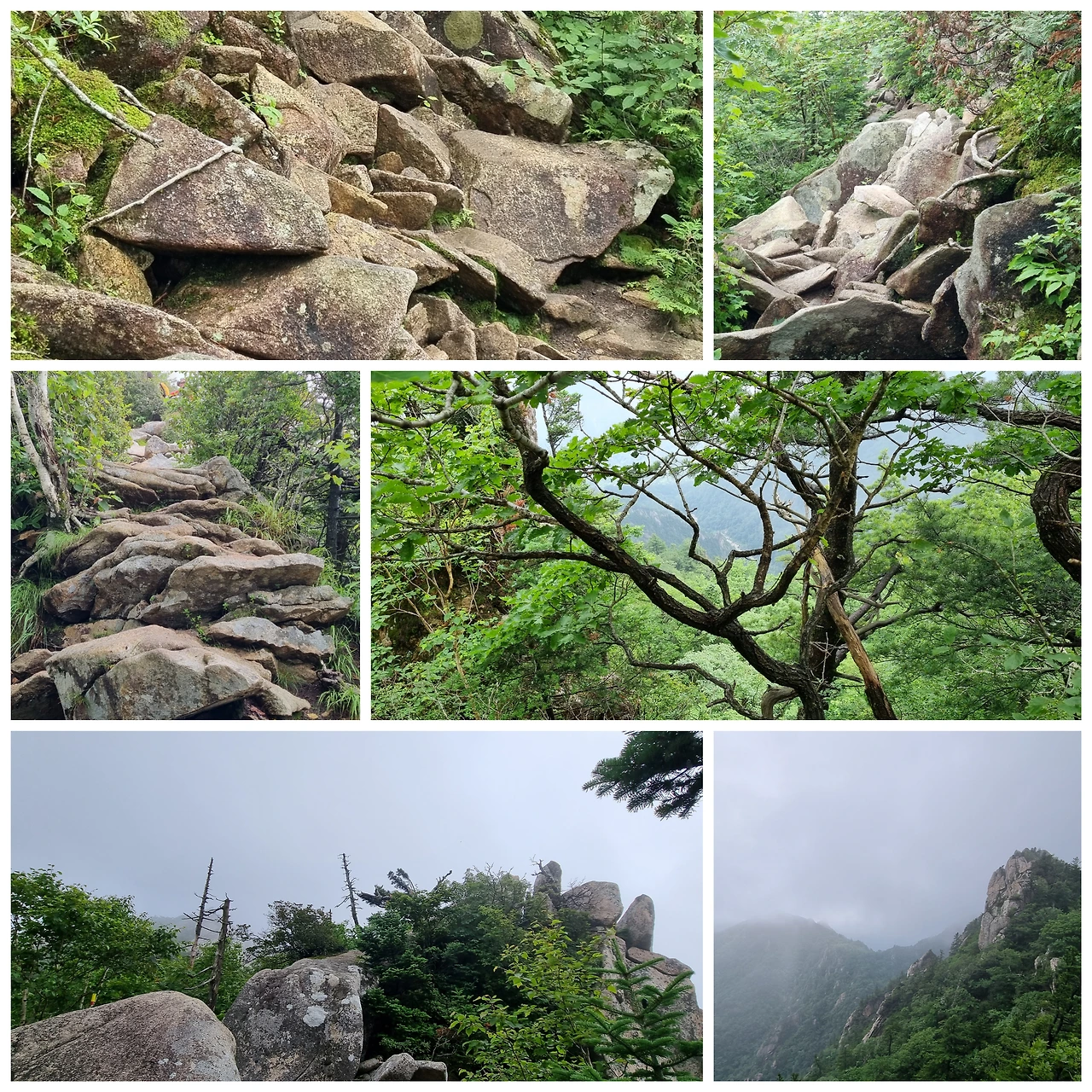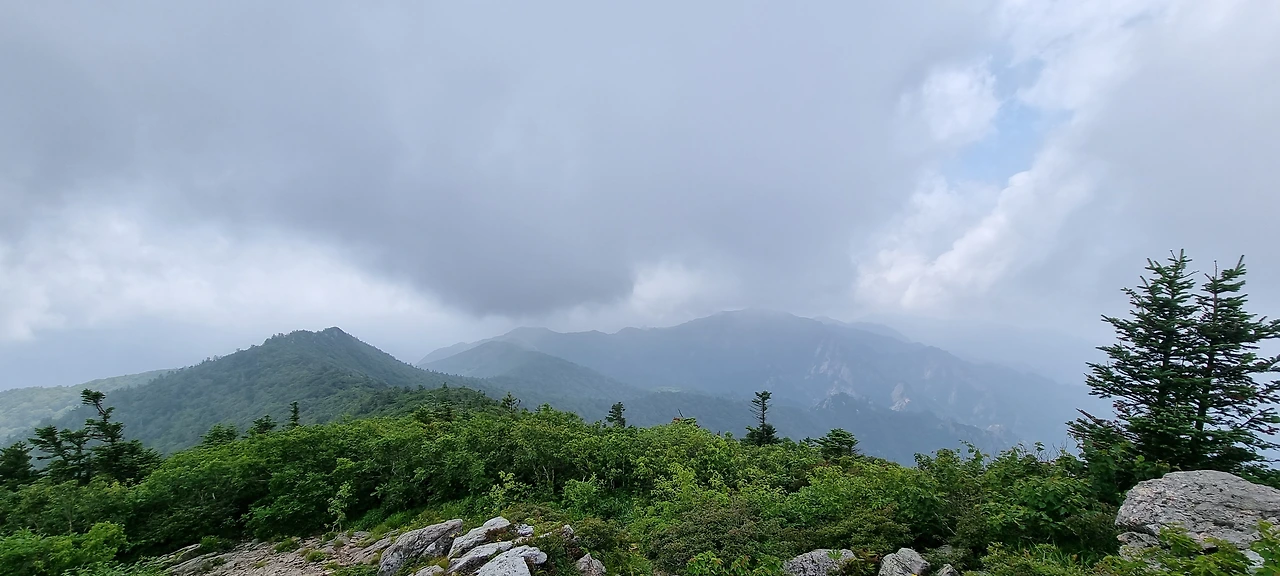 구름은 이제 중청을 감싸고 있다. 먼 곳에서 천둥소리가 들린다. 높은 곳에서 먼 곳의 소리가 잘 들린다. 그래도 볼 수 없었던 나무들을 보는 즐거움이 있다.