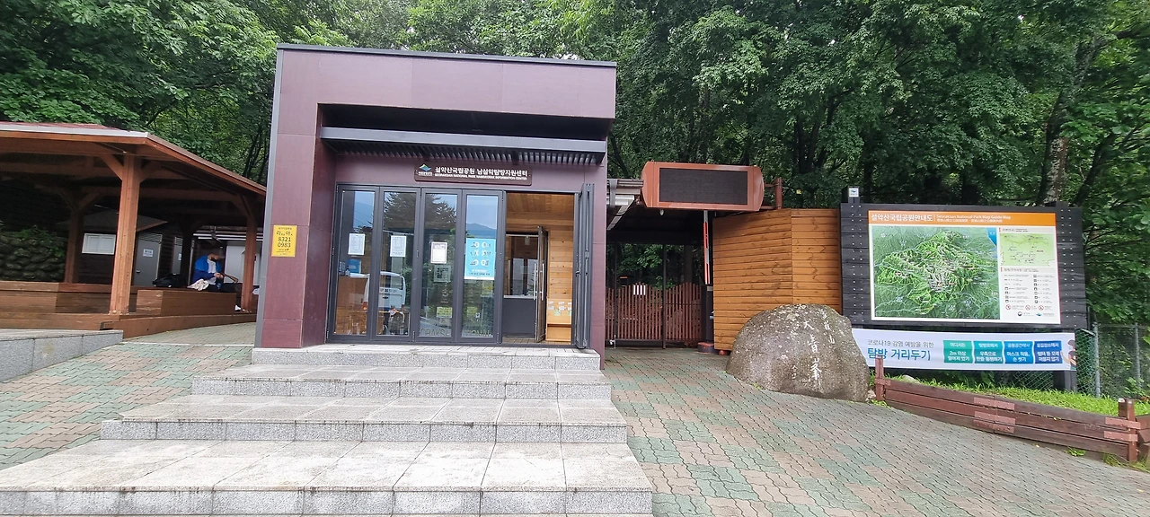 탐방지원센터에서 입산통제를 하면서 나오는 사람을 위하여 자동문을 설치하여 놓았다. 들어가는 사람은 못 들어가지만 나오는 사람은 버튼을 누르면 열리는 문이다. 설악산은 암산이다. 봉정암 쪽이나 오세암 쪽에서는 들머리 통제가 어렵지만 다른 곳은 통제가 가능하다. 문을 닫으면 들어갈 수 없다. 탐방지원센터에 휴식터에 정비를 한다.