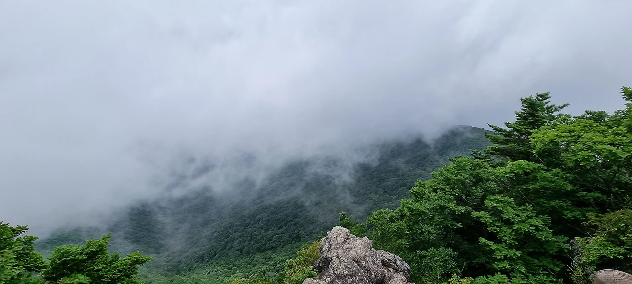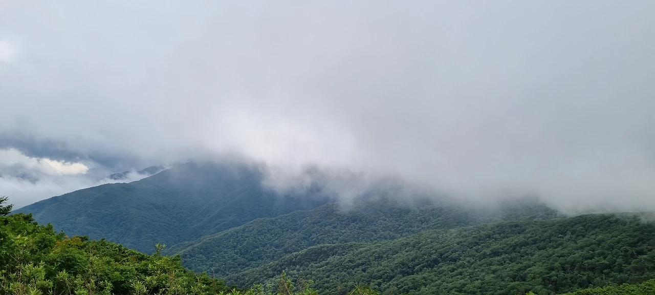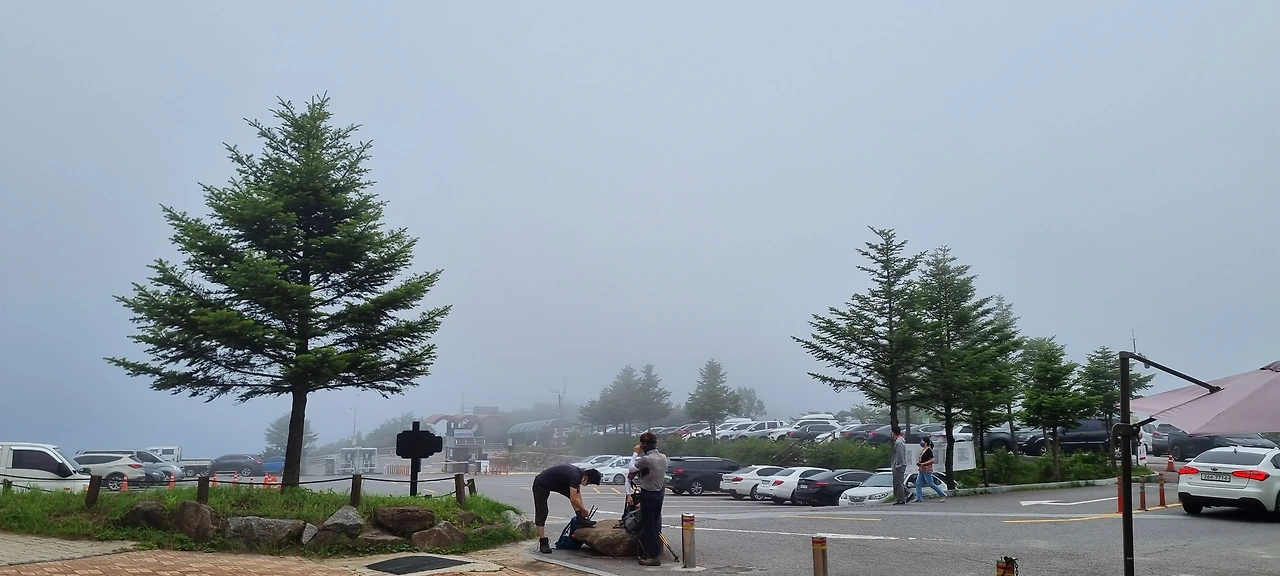 성삼재 도착했다. 구름이 고개를 가득 채우고 있다. 차량을 나서는 사람들을 보니 바람막이 여벌 옷을 입고 있다. 우리는 반팔 차림이다. 다만, 팔토시를해서 안도할 뿐이다. 시원한 공기에 더하여서 차가운 공기가 성삼재 일대를 채우고 있다. 더위를 피하여 온 보람이 있다. 다만, 설악산보다 더한 구름이 지리산 일대를 가득 채우고 있다. 비는 오지 않고 구름 속을 걸어야 한다.지나가는 구름이나 구름 속에 한두 방울 떨어지는 것을 보고 비라고 얘기하기에는 어려움이 있다.