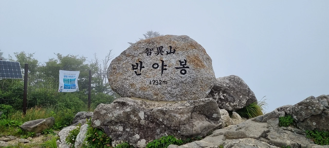 3년 전에는 마지막을 올라가기 전에 밧줄을 잡고 올랐는데 이제는 데크가 설치되어 있다. 어려운 구간인데 이제는 쉽게 오른다. 반야봉이 있고 바람소리만 요란하다.오늘의 1차 목표지점에 도착하였다.