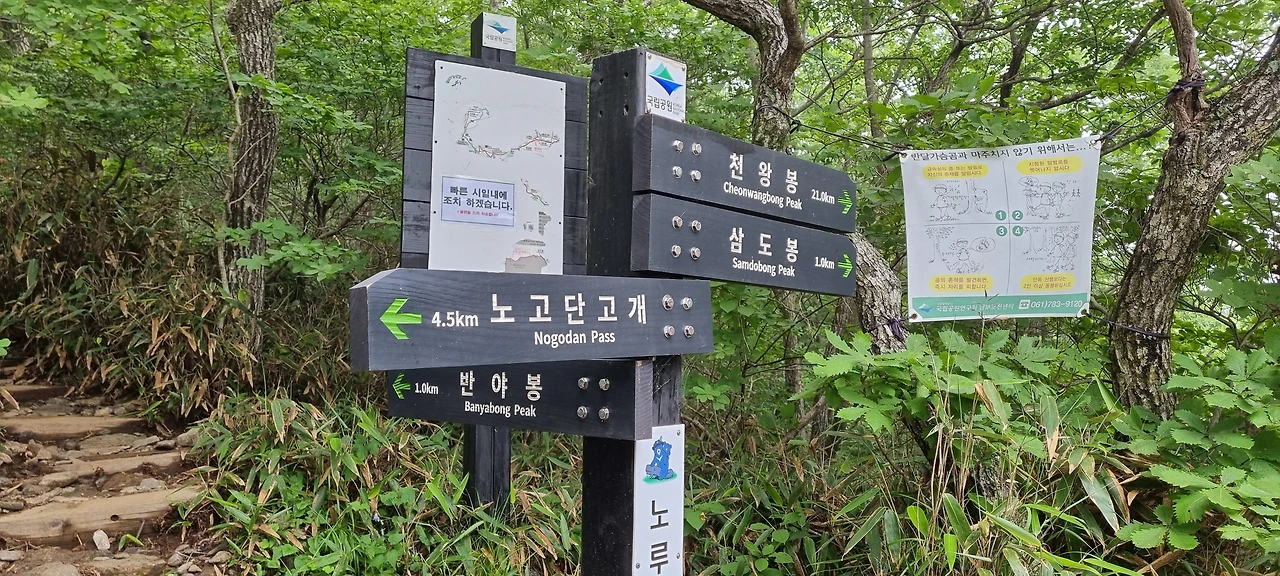 돌아간다. 임걸령까지는 내려간 후 노고단 고개까지 오른다. 반야봉을 돌아서 가야 한다. 노루목까지 가는 길이 20분 이상 소요된다. 반야봉을 오르고 내리는데 1시간 소요되는데 우회하는데 20분 소요되었다.