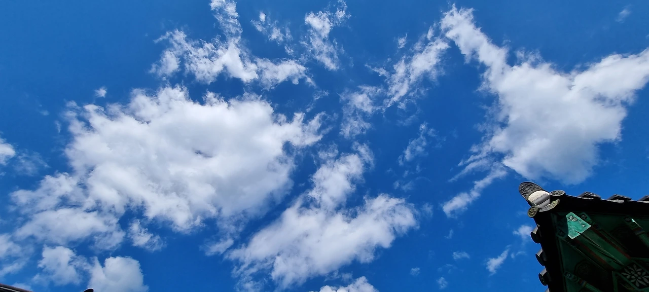 천은사 가람을 가운데 두고 사진을 담는데 하늘이 너무 이쁘다. 비오기 전 하늘 그 모습이라고 해야 하나 미세먼지에 찌든 하늘이 아니라 푸른 창공을 볼 수 있다는 것에 감사를 한다.