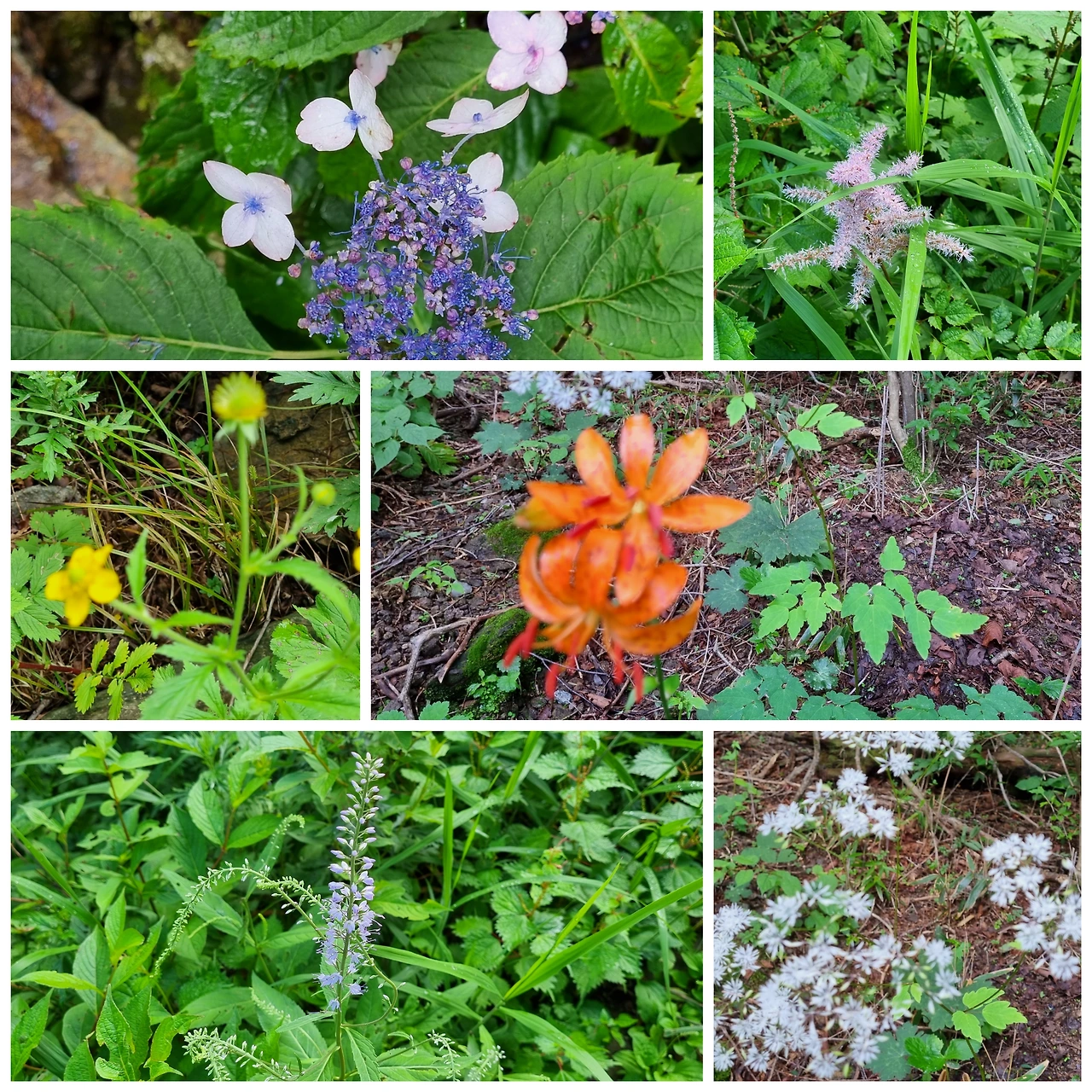 산수국,노루오줌,큰뱀무,말나리,산꼬리풀,