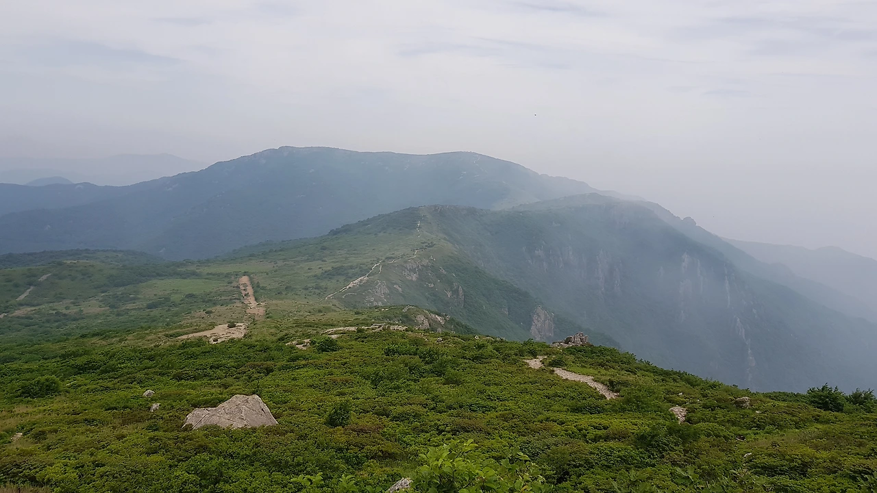 영남알프스의 1000m 넘는 봉우리의 특색이 있다. 산은 정형적인 육산이다. 그런데 정상에 도착하면 바위산이 된다. 흙들이 정상에서 비에 쓸려 나갔다고 보아야 할 것이다. 산의 정상이 산의 남사면이 되었다고 보아야 할 것이다. 북사면은 비에 의하여 쏠림이 심하지 않아 많은 사람들이 접근을 하고 남사면은 비에 의하여 바위만 남아 가파른 것이 현실이다.