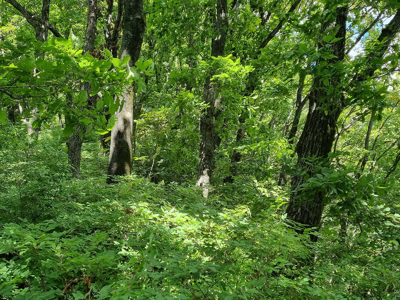 "처음부터 끝까지 똑같다. 산과 오르막 내리막 나무터널 주변은 아무것도 볼 수 없다. 겨울이 되면 좀 보일 것 같다. 하지만 눈이 오면 걷기 되게 힘든 구간일 것이다. 그리고, 우회길을 잘 보아야 한다. 그렇지 않으면 바위길을 내려가야 하는데 내려갈 수 없으니 다시 돌아가서 찾아야 한다."