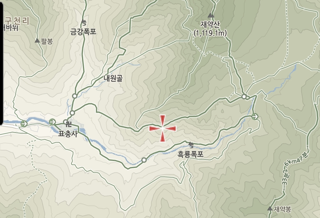 이렇게 멋있는 계곡을 나 혼자 본다는 것이 그저 미안할 뿐이다. 크로아티아를 갔을 때 폴리티 비체의 경치를 보기 위하여 버스를 타고 올라가거나 걸어서 간 후 경치를 내려오면서 보거나 올라가거나 본 기억이 있다. 여기도 가능하다. 다만, 표충사하고 협상을 해야 할 것이다. 작전도로로 버스나 아니면 suv차량으로 실어 나르고 내려오면 사자평도 볼 수 있다. 관광자원의 보고를 그대로 두고 있다는 것이 아쉽다. 제일 아래 등산로 표시가 되어 있는 곳이 자동차가 다니는 길이다. 비포장도로이지만 쉽게 걸을 수 있다.