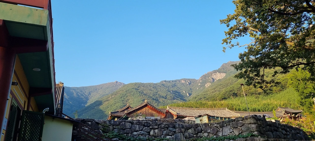 표충사 일주문 근처에 산객들이 걸어서 내려와 먼지를 두고 가기를 바라는 마음에 절 입구에 먼지떨이가 있다. 먼지 털기 전 표충사를 사이에 두고 천황산과 재약산을 볼 수 있어 한 폭으로 담아본다. 천황재에서 내려오면 표충사의 오른쪽으로 접근하고 재약산에서 내려오면 왼쪽에서 접근한다.