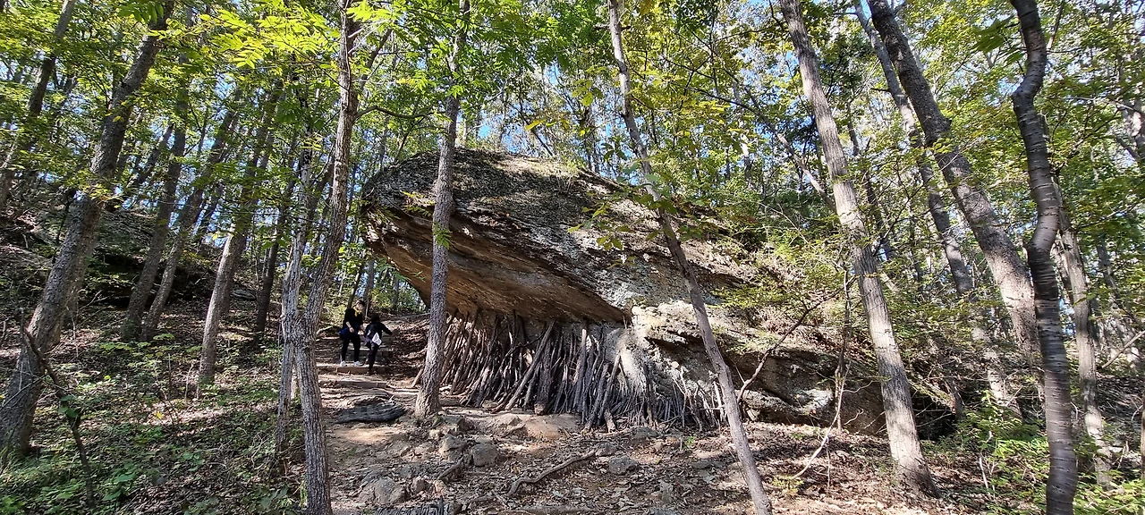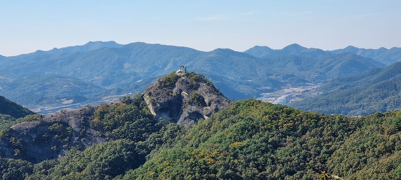성황당을 거쳐 봉두봉을 갔다가 다시 회군하여 삿갓봉 쪽으로 갈 것이다. 기묘한 봉우리는 삿갓봉이다. 삿갓봉은 접근이 불가능하고 근처에서 감상할 뿐이다.