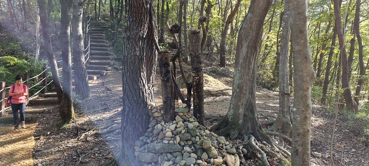 고갯마루에서 은수사까지 내려가는 길게 지그재그도 아니고 일직선으로 내려간다. 올라오는 사람도 힘들 것이다. 하지만, 내려갈 때는 시원한 맛이 있다. 올라올 때는 508개를 헤아렸는데 내려갈 때는 그냥 내려갔다.