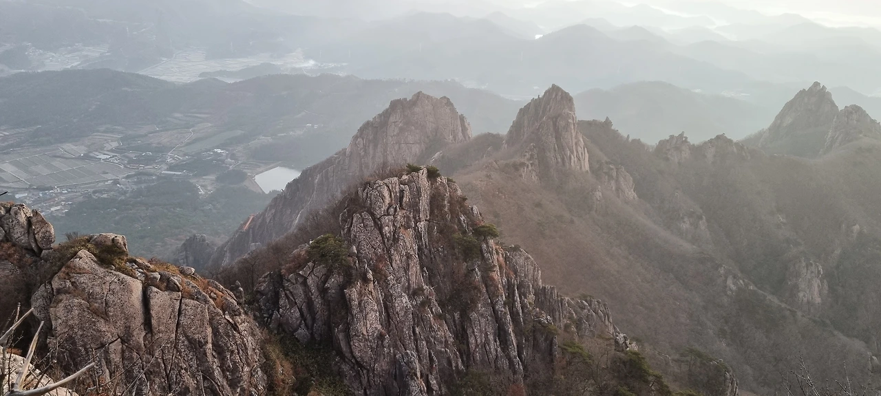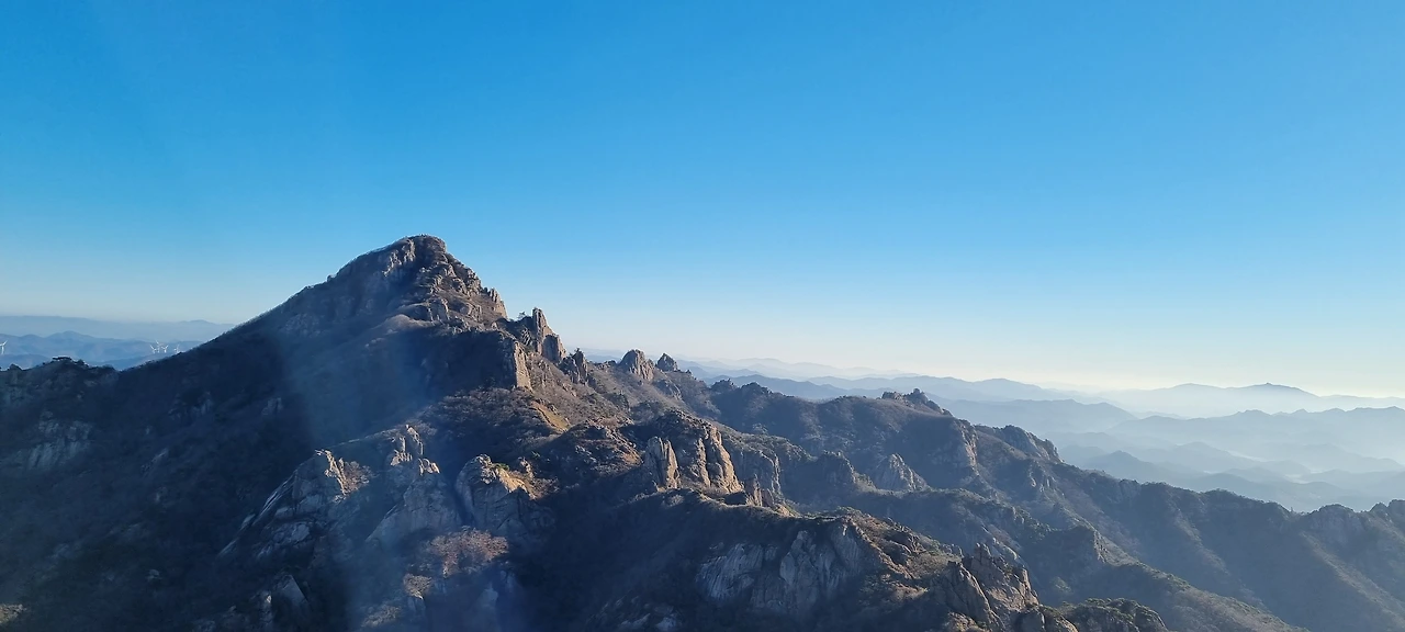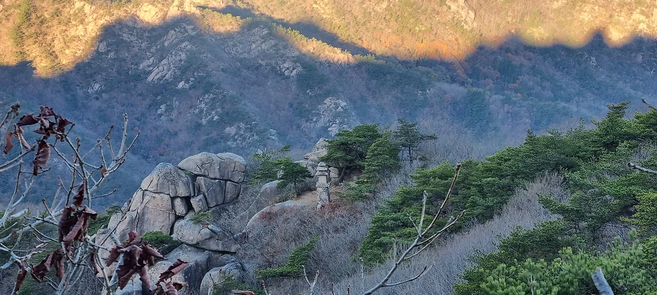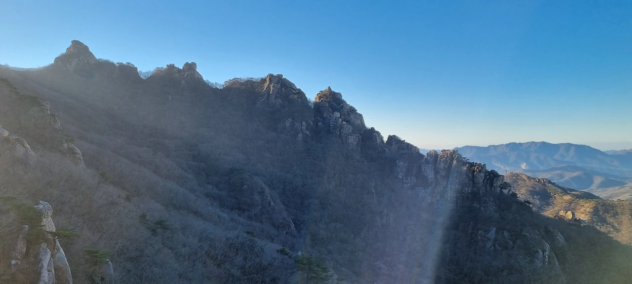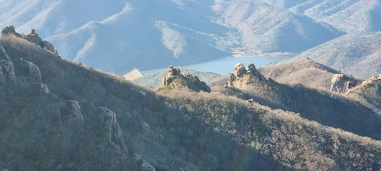 바위가 있다 능선을 지나 도갑사로 간다. 멀리 있는 능선 위의 바위를 보니 발가락 같기도 하고 왕관의 장식품 같기도 하다.