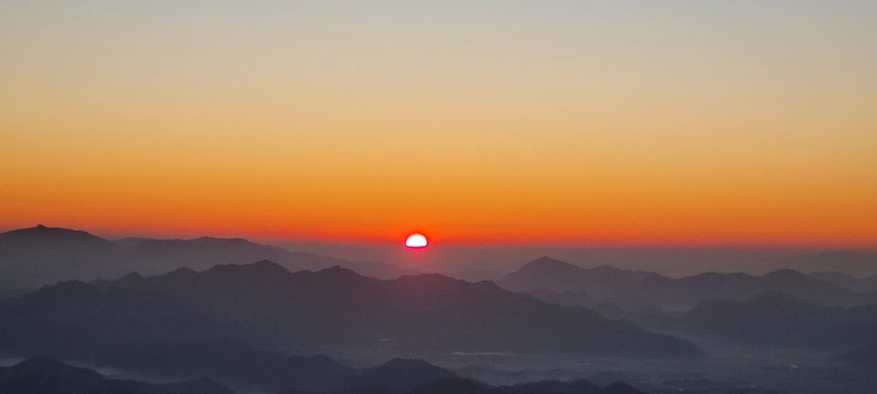 일출이다. 천황봉 정상에서 일출의 모습을 볼 수 있는 것도 한라산이나 지리산이나 설악산이나 마찬가지로 보기 어렵다고 하는데 오늘은 일품이다. 그 일품을 사진에 담는다. 평야와 바다 그리고 월출산 남쪽의 낮은 산들이 어우러져 일출이 멋있다고 보아야 할 것이다. 동해안의 일출은 바다에서 올라오는 일출이어서 일품, 지리산의 일출은 산과 산 그리고 산봉우리와 태양이 조화를 이루어서 일품인 것과 일맥상통한다.