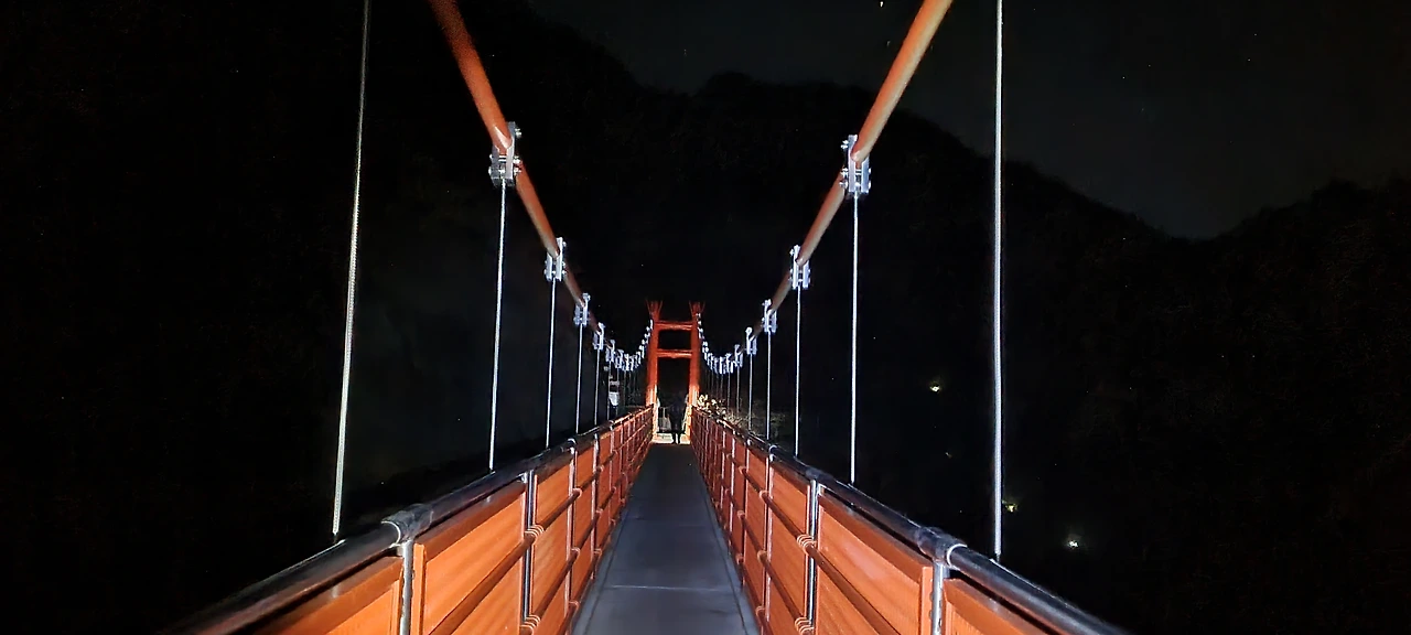 2시간이 지난 후 산행을 하였으면 하늘을 향해 카메라를 들이 되었을 것인데 한차례 시도해보고 포기하고 눈에만 넣어둔다. 그래도 구름다리에 도착하여 그 모습을 랜턴으로 비추고 이를 담는다. 맞은편 능선의 기암괴석은 달빛을 받아 서서히 보여주지만 이것도 눈에만 담아야 한다.