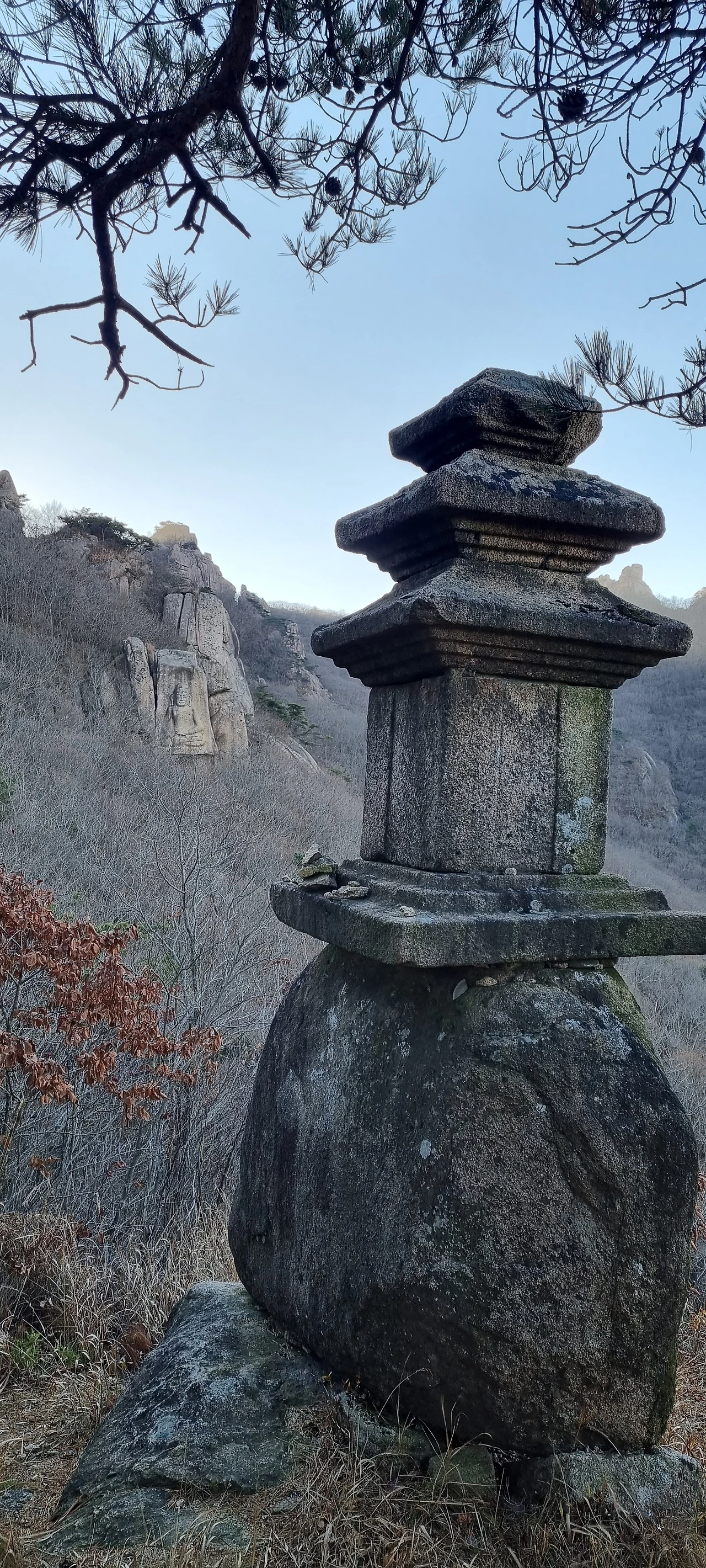 마애여래좌상과 삼층석탑을 보고 다시 구정봉을 오른다. 얼마 되지 않은 길을 그냥 지나치는 사람들에게 볼거리가 있다는 것을 알려주어 지나치지 않도록 해야 되겠다. 내려올 때의 궁금증을 해소하고 오르면서 양쪽 능선의 암릉은 다시 한번 돌아본다. 내가 가야 할 길은 그저 아름답고 가보자는 마음이 있고 지금은 그냥 지나쳐야 하는 곳은 미답의 공간으로 남겨둔다.