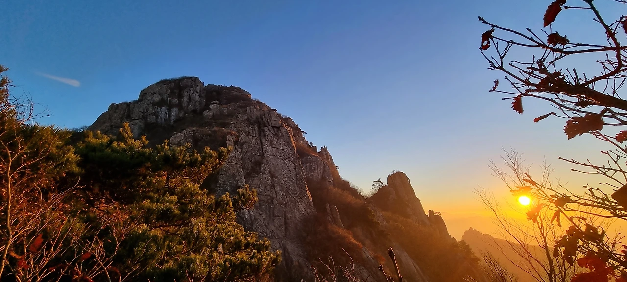 천황봉이 태양과 햇빛을 받아서 아름다움을 뽐내고 있고 아침햇살을 받은 구정봉이 붉은빛을 띠우고 있다. 멀리서 온 사람들이 있다. 경상도 북부 지방 사람들이 단체로 왔다. 그분들도 우리들처럼 밤을 친구 삼아 왔다고 한다. 1시까지 도갑사로 간다고 하는데 일행을 삼아도 될 것 같은데 우리처럼 산객을 모집하여 운행하는 산악회가 아니고 동네 산악회라서 그런지 곁을 주지 않는다. 그들끼리 서로 주고니 받으면서 걷고 있다. 그래도 사람들의 기억이 계속된다. 산을 4-5시간 걸으면서 계속 만나고 헤어진다.