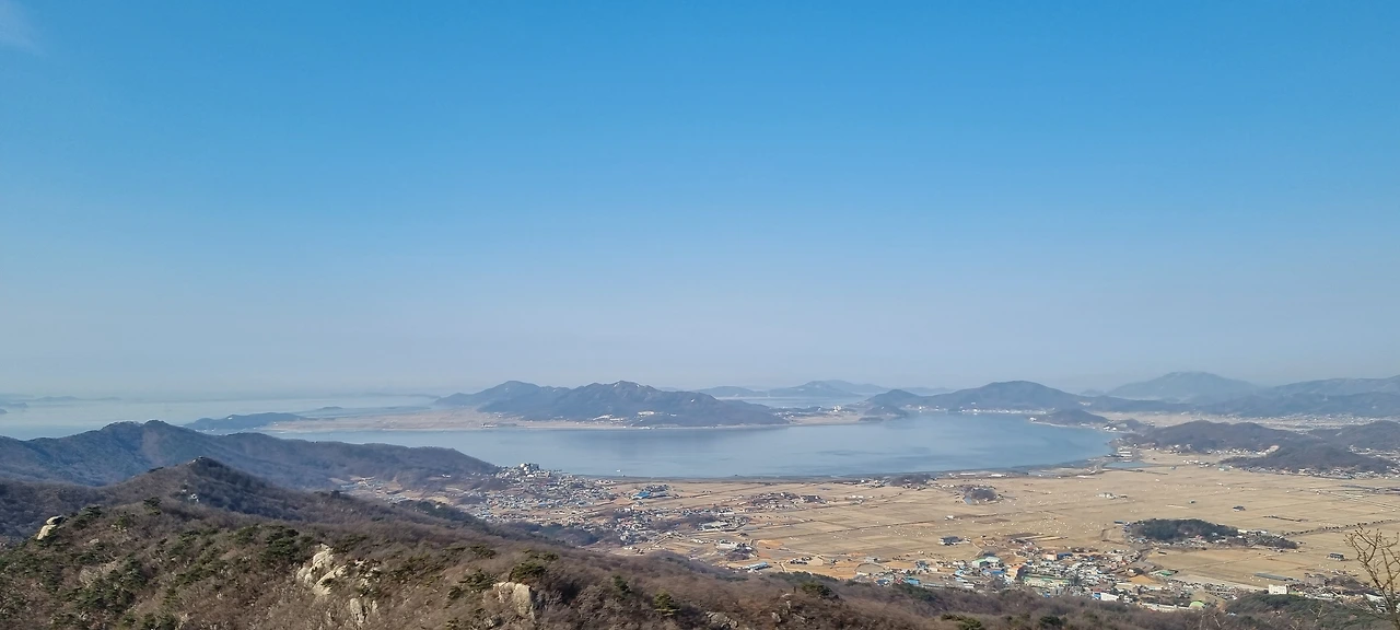 암릉지대를 오르는 길을 피하여 능선길과 만나는 지점으로 이동한다. 오르면서 전망대에서 한 번쯤 주변을 둘러보고 걸어본다. 함허동천에서 바라다본 정상에 오르고 멀리 참성단이 있는 마니산 정상을 바라다본다. 섬 건너편의 영종도, 신도와 장봉도 등이 우리 앞에 다가온다. 썰물로 인한 강화도 앞의 갯벌이 그대로 노출되어 있다. 노출되어 있는 저 갯벌이 강화도 남단의 갯벌로 세계 5대 갯벌 중의 하나로 전체면적은 약 353㎢에 달하며, 특히 “여차리-동막리-동검리”를 잇는 강화 남단갯벌은 육지로부터 최대 약 6㎞, 면적은 약 90㎢로 강화갯벌 면적의 약 25%를 차지하며, 천연기념물 제419호로 지정되어 있다고 한다.