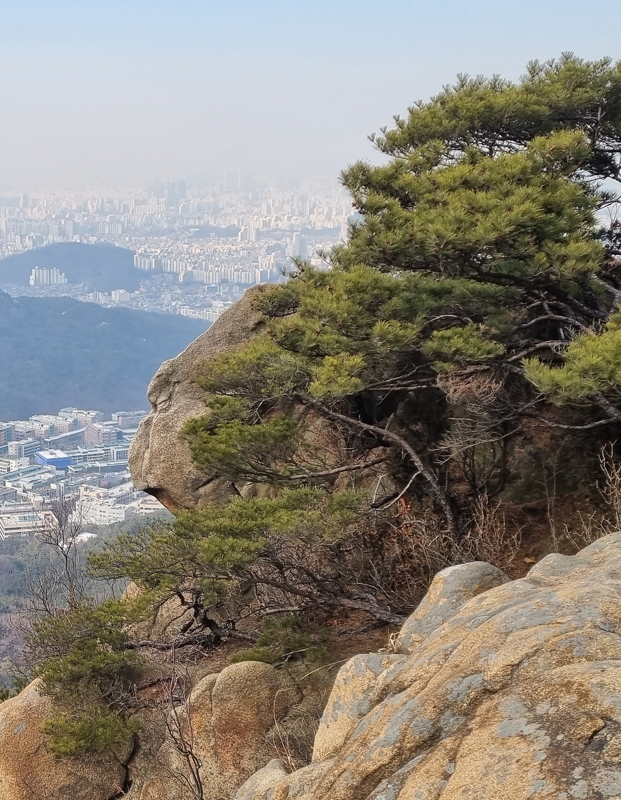 갈림길에서 바로 가느냐 우회하느냐 하는 갈등도 없이 바로 간다. 예전에는 이곳에서 갈등을 하였으나 이제는 데크가 우리에게 내적 갈등을 유발하지 않는다. 관악문을 지나 지도바위를 보고, 예전부터 있었던 바위에서 코끼리의 형상을 보고 횃불 바위를 담으면서 연주대를 다시 한번 담아본다. 연주대에 예전에는 줄을 타고 올랐는데 이제는 편안하게 데크 계단을 오르면 된다. 그 데크계단에 사람들이 가득하다. 마스크를 쓰고 힘겹게 오를 뿐이다.