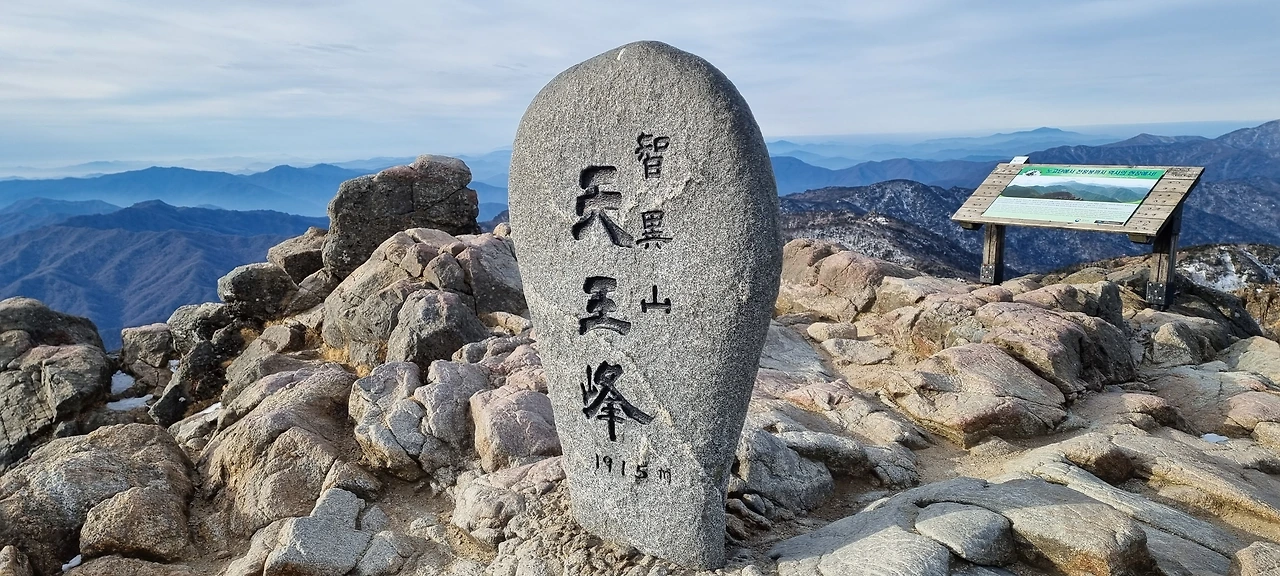 천왕봉을 오르고 또 내려본다. 한국을 내려다본다. 천왕봉 정상석에 쓰여있는 "韓國人의 氣像 여기서 發原되다" 그대로다. 사람들은 올랐다는 기쁨과 함께 정상석을 배경으로 인증샷을 남긴다. 오늘은 1월 말이다. 하지만, 음력으로는 아직 섣달이다. 그믐에 다가가고 있다. 금년을 천왕봉에서 보내고 내려온다. 1년에 한 번쯤 지리산 정상에 있어본다. 하지만, 지리산 정상의 겨울바람이 정상에 사람들을 남겨두지 않는다. 중산리 쪽에서 올라오는 사람들은 아이젠이 올라온다. 눈이 없는 것 같다. 중산리 쪽에서 올라온 사람들은 열을 내면서 올라왔는데 바람에 휘둘러 서둘러 아이젠을 착용하고 장터목대피소 방향으로 내려가고 장터목 쪽에서 올라온 사람들은 중산리 쪽으로 방향으로 내려간다. 그리고 천왕봉에서 중산리 쪽으로 방향을 잡고 10m로 내려오지 않았는데 바람이 없다. 따뜻한 곳에 앉아 휴식을 취하는 사람들이 있다. 나도 자리 잡고 앉아서 휴식을 취하면서 내려 갈길을 가름해본다. 천왕봉에서 중산리까지 바로 내려간다.