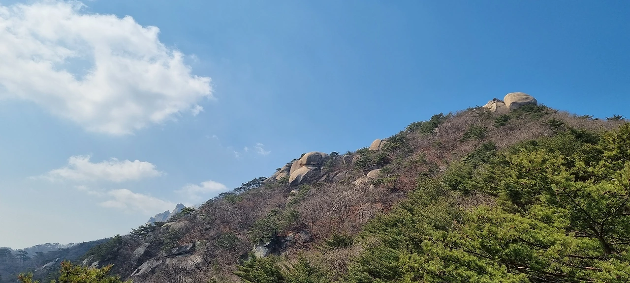 바윗길을 오르고 내리고 갈길이 멀다. 포대 정상을 바로 앞에 두고 고민이다. 포대 정상을 올랐다가 Y계곡을 넘거나 다시 우회하는 방향이 있는데 포대 정상을 갔다가 하산하여서 다시 자운봉을 간다고 하면 동행한 혼낼 것 같다. 원도봉을 오르면서 힘들었는데 올랐다가 내려와서 다시 오르는 것은 힘든 것이 사실이다. 그리고 신선대를 올라야 하는데 걱정이 앞선다. 포대 정상을 가서 Y계곡을 가는 것을 포기하고 우회로를 이용하여 가림길에 도착한다. 갈림길에 도착하여 신선대를 보니 정상 인증샷을 남기려는 사람들이 즐비하다. 신선대 정상이 좁기 때문에 우회적으로 인증샷을 남길 수 없기 때문에 공정성이 확보되고 있다. 아내는 신선대를 가지 않고 갔다 오라고 한다.