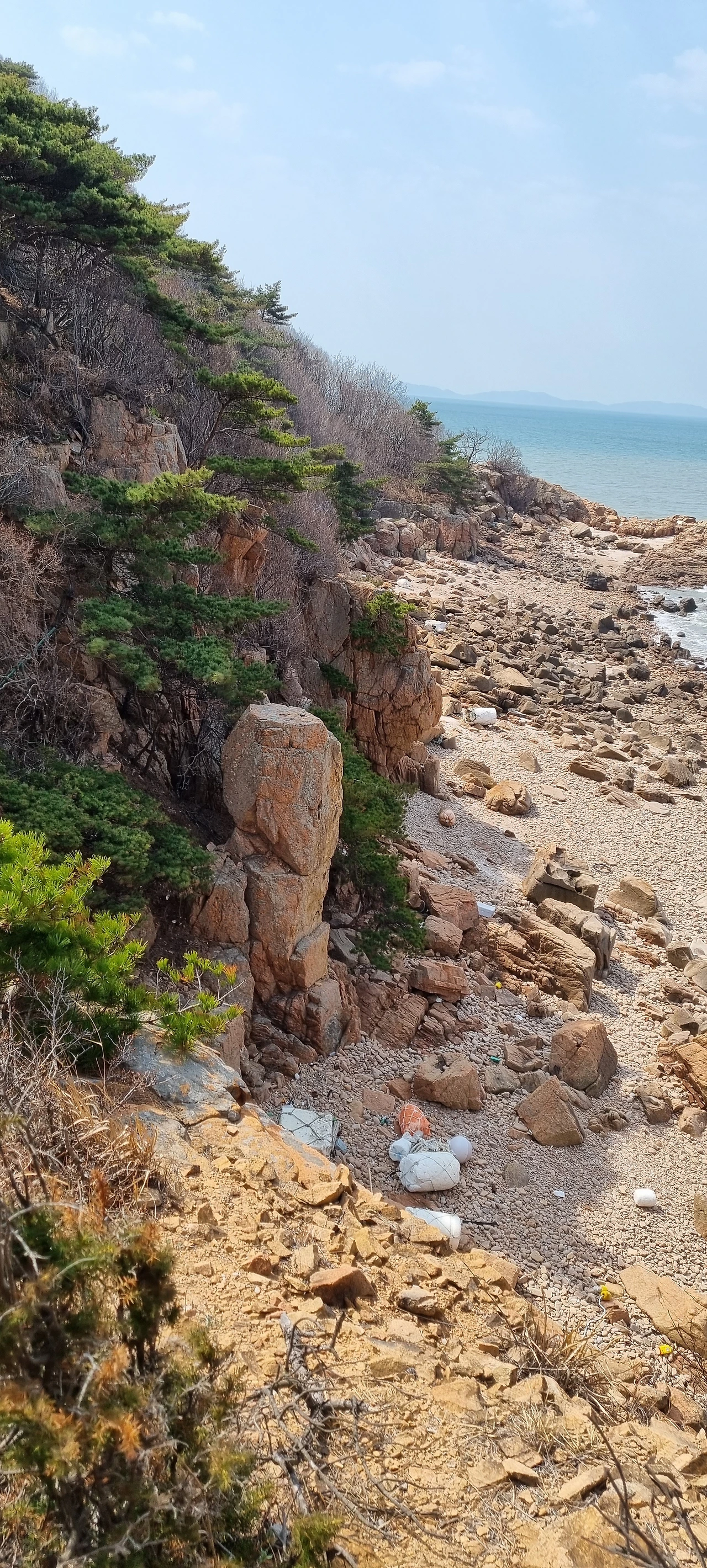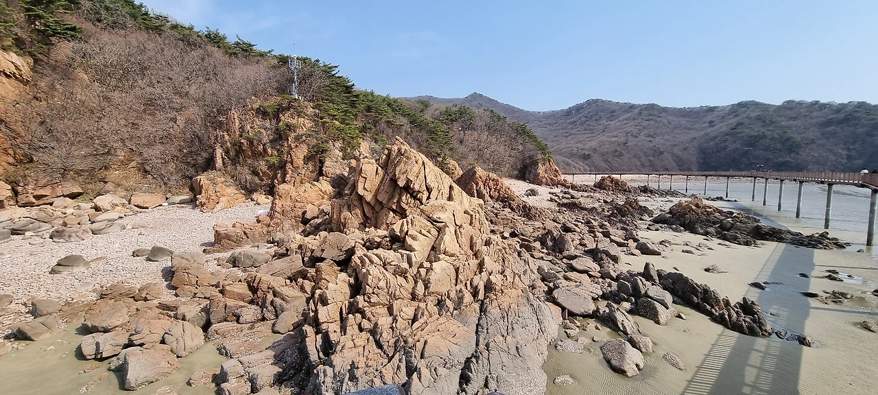 해안을 트레킹을 하는 것은 이제 끝이다. 이곳부터 하나개해 수욕장까지는 연결이 되어 있지 않다. 아쉬움을 뒤로하고 산으로 간다. 산으로 가기 싫은 사람은 봉우리재에서 산이 아닌 마을로 내려가서 큰무리선착장으로 가는 버스를 타고 가던가 해안을 산책하면서 걸으면 된다. 2-3시간을 산책할 수 있는 좋은 길이다.