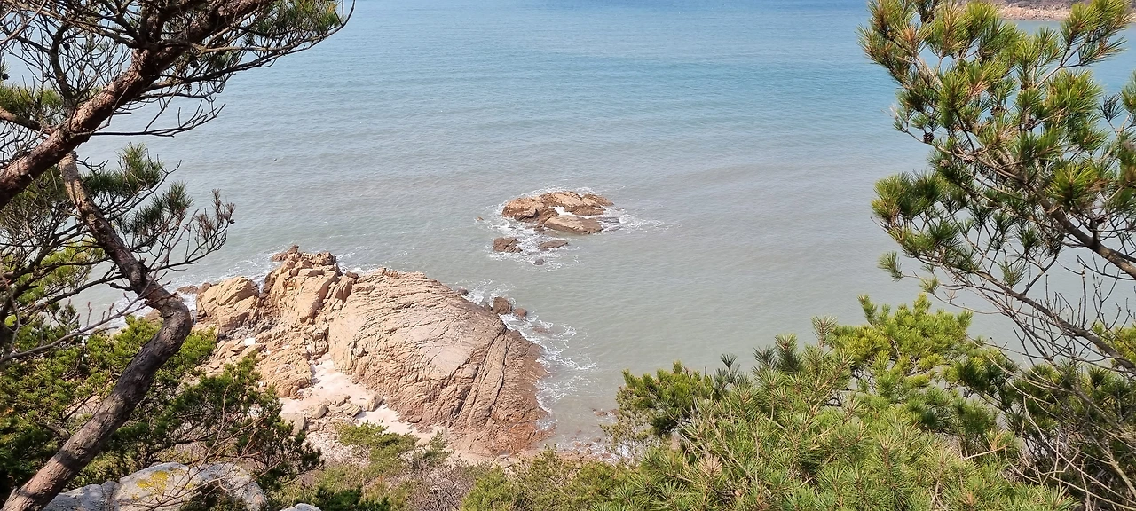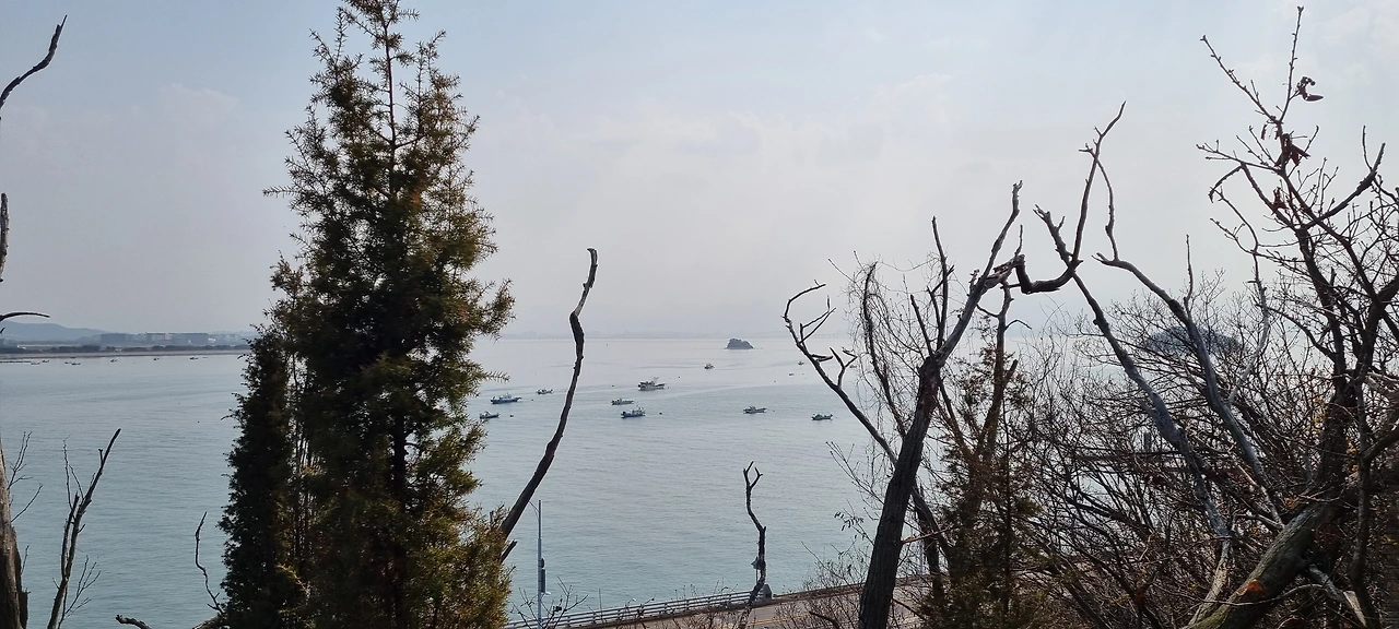 처음 올라가는 길은 가파르다. 그래서 처음부터 세다고 이야기를 한다. 10m만 오르면 둘레길은 옆으로 당산은 직진이다. 우리는 옆으로 간다. 오늘은 둘레길 1코스, 2코스를 걷고 국사봉을 오른 후 호룡곡산을 갔다가 해상관광탐방로를 이용하여 하나개 해수욕장에서 마침표를 찍을 것이다. 무의도를 큰 무리 선착장에서 시작하여 당산을 오르고 능선을 따라 걷다가 국사봉을 오르고 내리고 호룡곡산을 오르고 내린 후 해상관광탐방로를 걸어보았지만 둘레길을 걸어본 적이 없다. 그냥 걸으려고 왔고 즐기는 것이다 덤으로 국사봉과 호룡곡산을 오르는 것이다. 오늘은 둘레길이 묘미라고 해야 할 것이다. 큰 무리 선착장에서 오르자마자 둘레길 오른쪽으로 방향을 잡는다. 1코스는 구낙구지길이라고 한다. 이런 곳에 이렇게 숨어 있는 비경이 있고 조용히 즐길 수 있는 곳이 있다는 것이 즐겁다. 무의도의 동쪽만 보고 능선만 보다가 서쪽을 본 것이다. 실미도는 그냥 눈으로만 담는다.