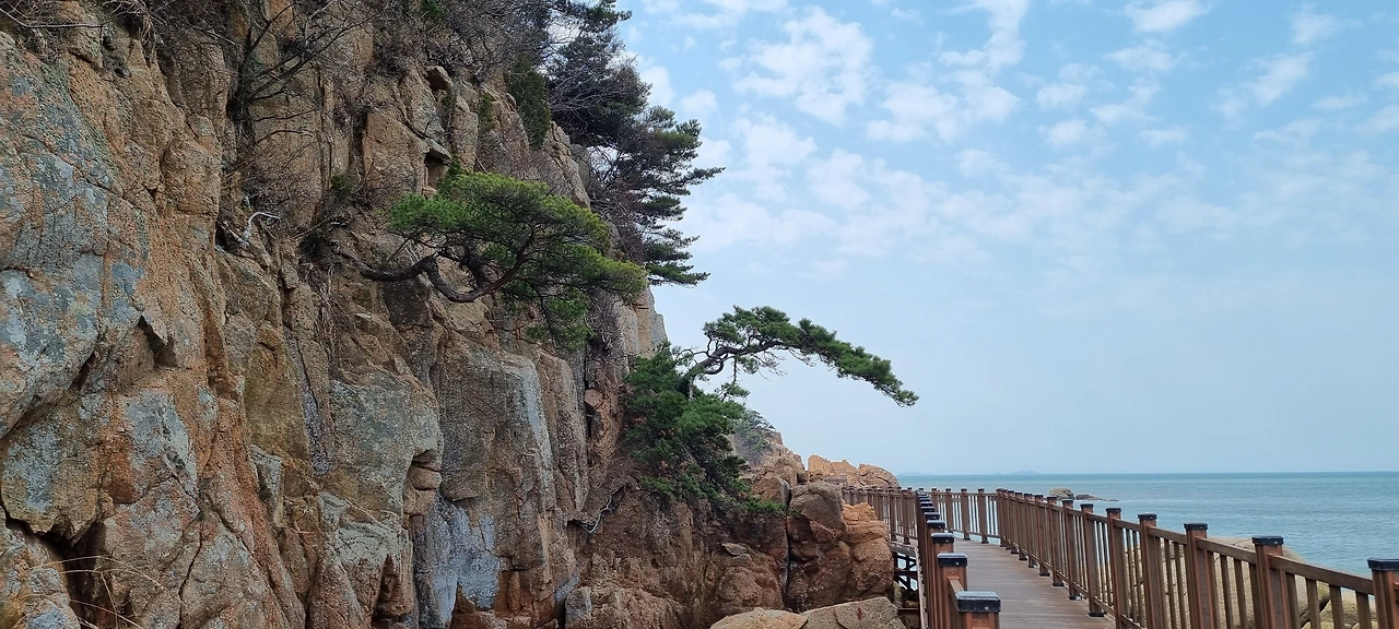 구낙구지길을 따라가다 보면 해안에 설치된 데크가 있다. 바다에 설치되어 있는 해상관광탐방로와 동일하나 사람들이 없다. 사람들에게 알려지지 않은 길이다. 오늘 우리는 전세를 내었다. 바다도 보고 섬도 보고 이웃한 섬도 보고 그리고 갈매기도 본다. 아무도 없다. 1코스가 끝날 때까지 그냥 즐긴다. 홀로 고독을 즐길 수 있다. 해안가에 있는 바위가 파도를 맞아 온갖 모양을 만들고 있고 바다의 그 향을 맛볼 수 있게 하였다. 이웃한 실미도는 아직 물때가 아니라서 고독의 섬으로 남아있다. 실미도가 고독의 섬으로 남아 있을 때 무의도의 해안 산책길은 파도소리가 가까운 친구가 되지만 실미도가 고독의 섬에서 탈출하면 무의도의 해안 산책길은 파도소리를 멀리 보내야 한다.