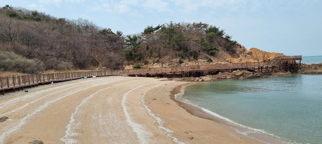 바닷가 해안의 백사장에 조개껍질이 물길에 따라 그 모양을 이루고 있다. 서해안의 조류 간만의 차를 그대로 볼 수 있다고 할 수 있다. 사람이 거의 찾지 않는 해변의 모습을 그대로 볼 수 있었다.
