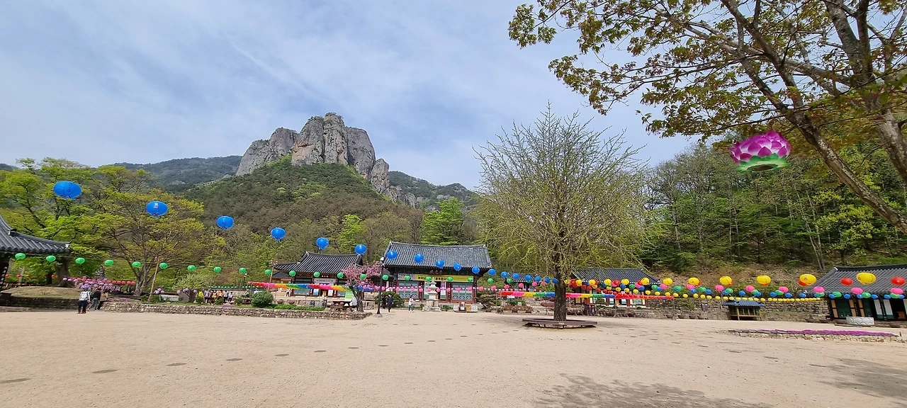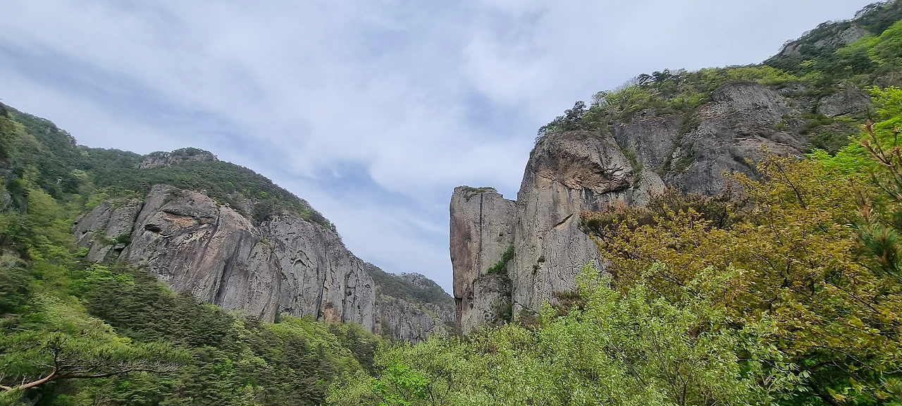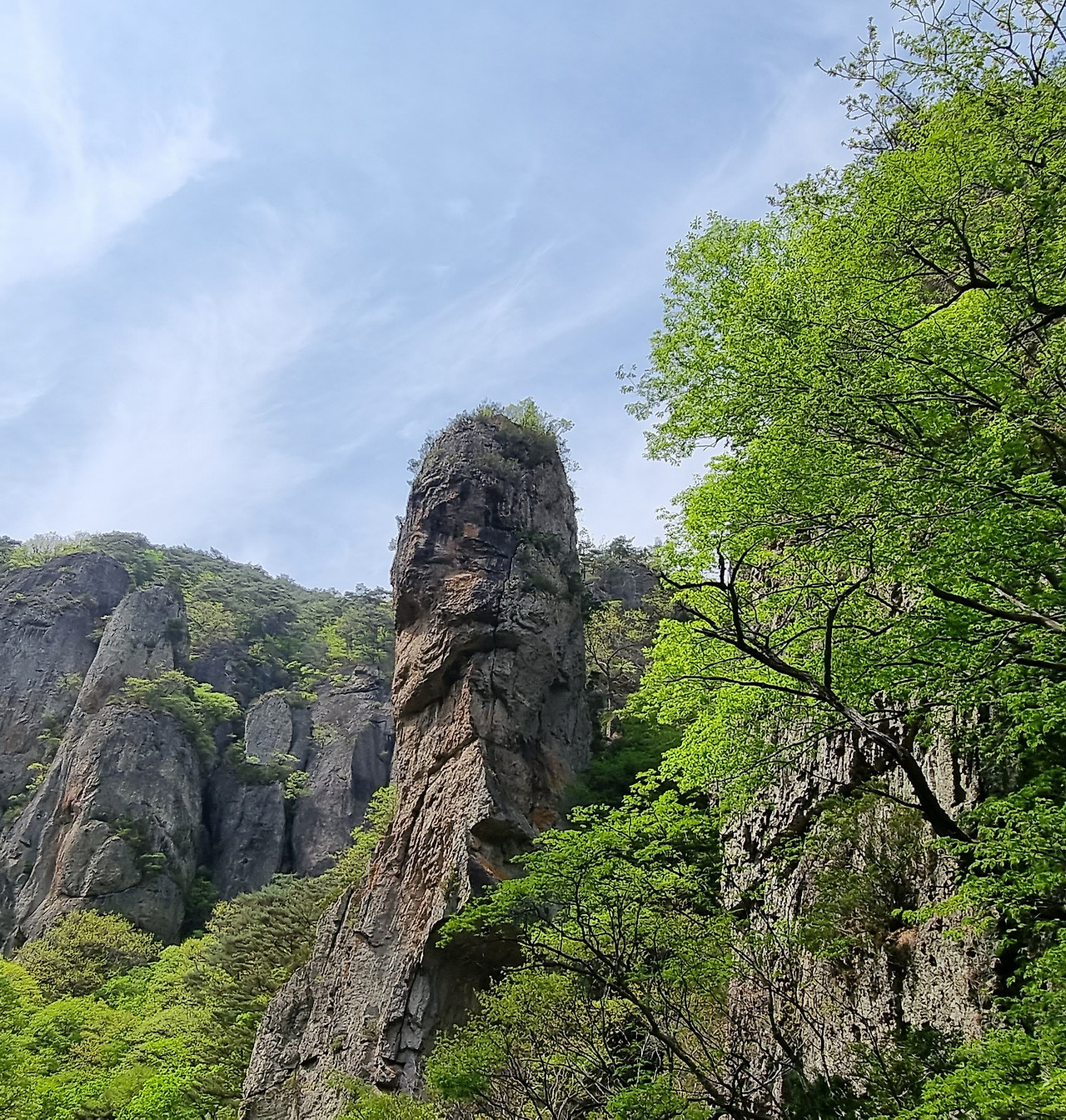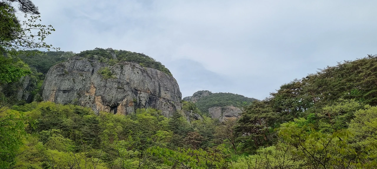 대전사로 내려가다 보면 이제는 필요 없는 바위가 있다. 아들바위라고 한다. 이곳 바위 위에 돌을 올려놓으면 아들은 낳는다고 한다. 남아선호 사상이 극에 이르렀을 때 이러한 것이 있었을 것이라고 생각한다. 대전사로 가면서 기암이 그대로 모습을 보여준다. 2개의 봉이 보인다. 다섯 손가락에 2개만 보인다. 대전사에서 다시 뒤를 돌아보고 기암을 본다.