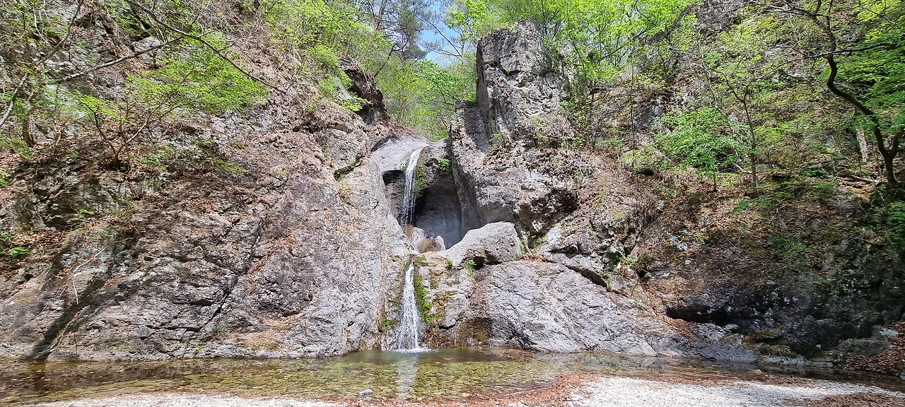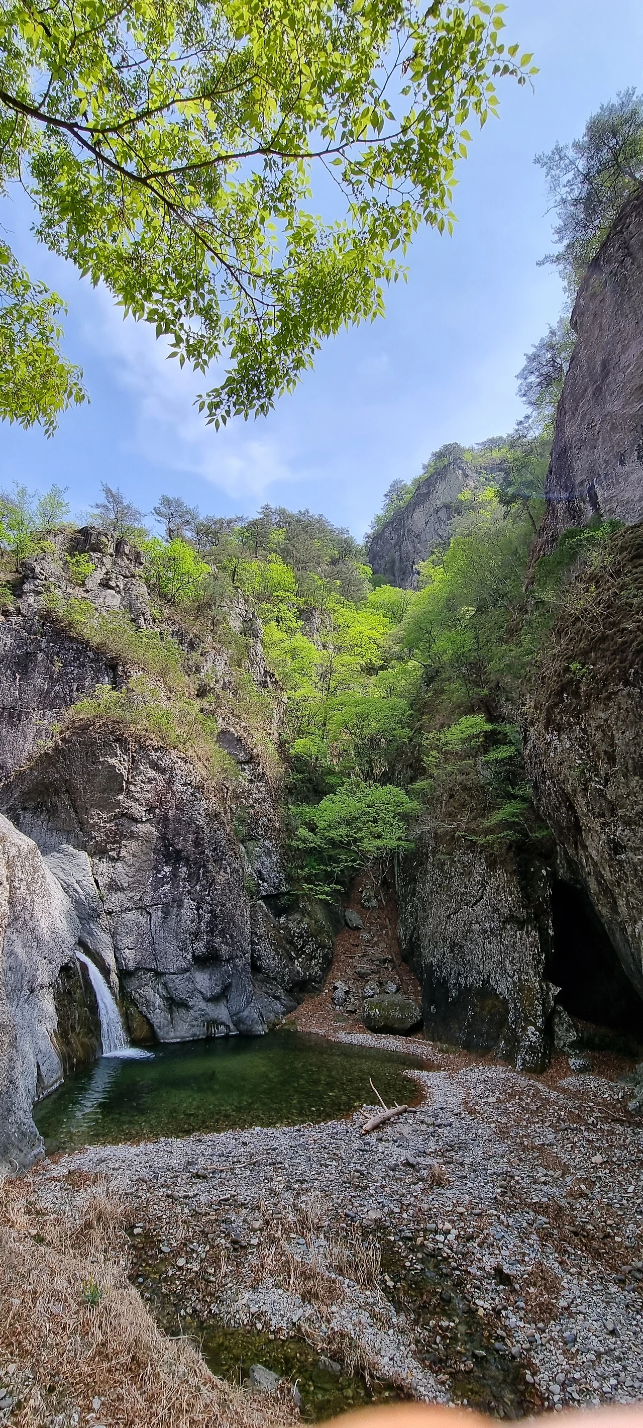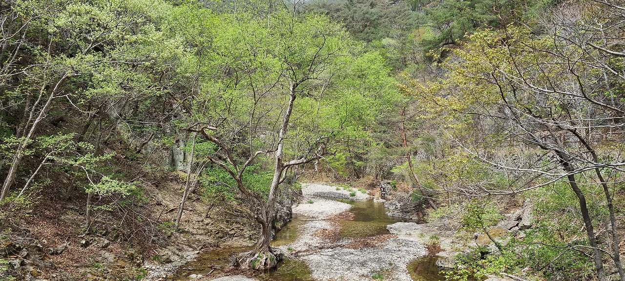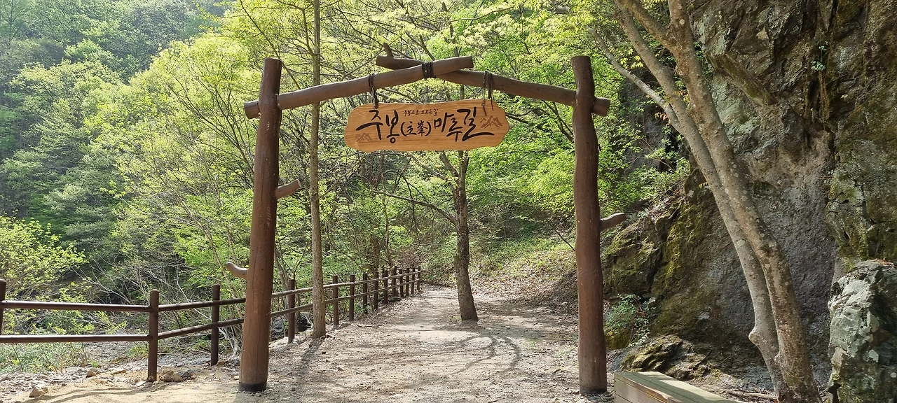 가메봉을 가는 길은 폐쇄되어 있다. 산불조심기간에는 주봉에서 가메봉, 가메봉에서 후리매기삼거리까지 등산로가 폐쇄되어 있다. 길을 내려간다. 가파르게 내려가는 곳은 계단이다. 올라오는 사람은 거의 없고 내려가는 사람들이 주를 이룬다. 계곡에 도착하면 이제는 평지길의 연속이다. 등산은 끝이 났고 이제는 관광 모드이다. 주왕산 국립공원을 찾는 많은 이들이 이 관광코스를 찾는다. 다만 주왕굴, 무장굴, 연화굴은 그렇게 많이 찾지 않지만 오늘 다 찾아보았다. 주왕산의 절경을 이제는 관광 모드로 걸어본다.