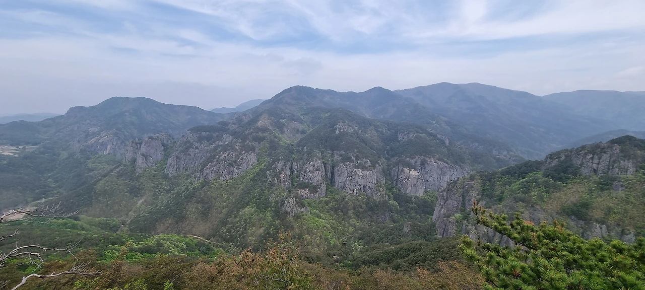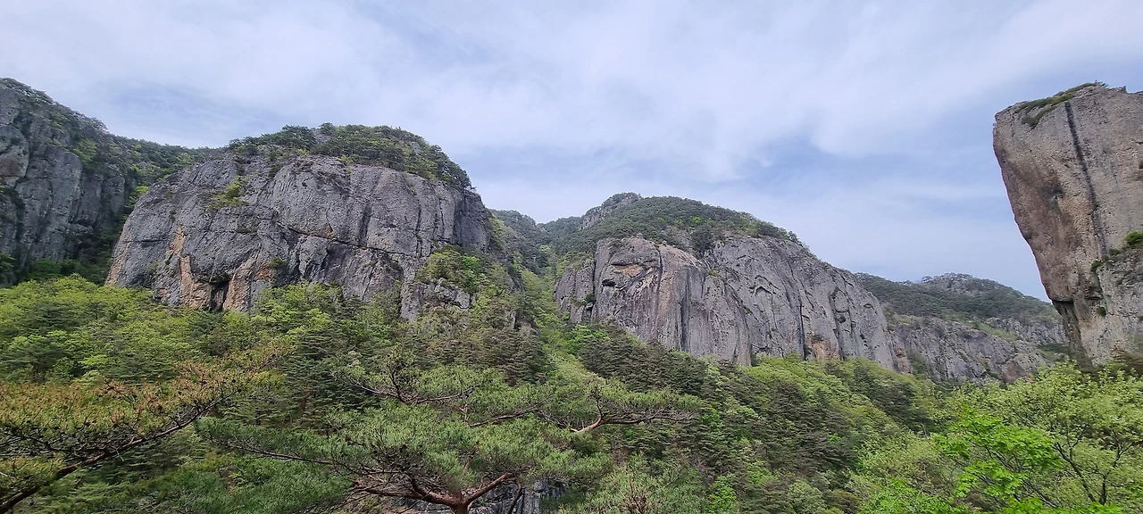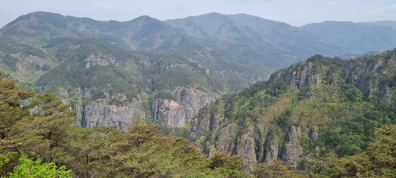 철쭉이 분홍색 꽃을 예쁘게 피었다. 수줍은 아가씨처럼 꽃을 피웠다고 지인이 이야기한다. 그 분홍색 꽃이 다른 지역에 있는 철쭉과 차이가 있다. 이번 주에 황매산의 철쭉을 보려 가려다가 아직 만개하지 않은 것 같아 이곳으로 방향을 잡았는데 황매산 철쭉이 이제는 만개할 것 같다. 다음 주쯤에는 황매산이 만개할 것인데 누구와 함께 황매산을 갈 것인지 고민을 해보아야겠다. 시적인 감각이 있다고 해야 할 것이다. 주봉을 오르면서 한 번씩 쉴 때마다 전망대에서 바라보는 맞은편의 주왕산의 다양한 모습은 색다른 맛이다. 맛집이 따로 없다. 연화봉과 병풍바위 등이 있고 그 아래에 탐방로가 어떻게 보면 예쁘다고 할 수 있다. 주봉을 바로 앞에 두고 능선에 좌측에서 아래를 내려다보면 그 경치가 장관이다. 주왕산의 맛을 그대로 볼 수 있다고 할 수 있다. 오른쪽에서는 깊은 산골을 그대로 볼 수 있다.