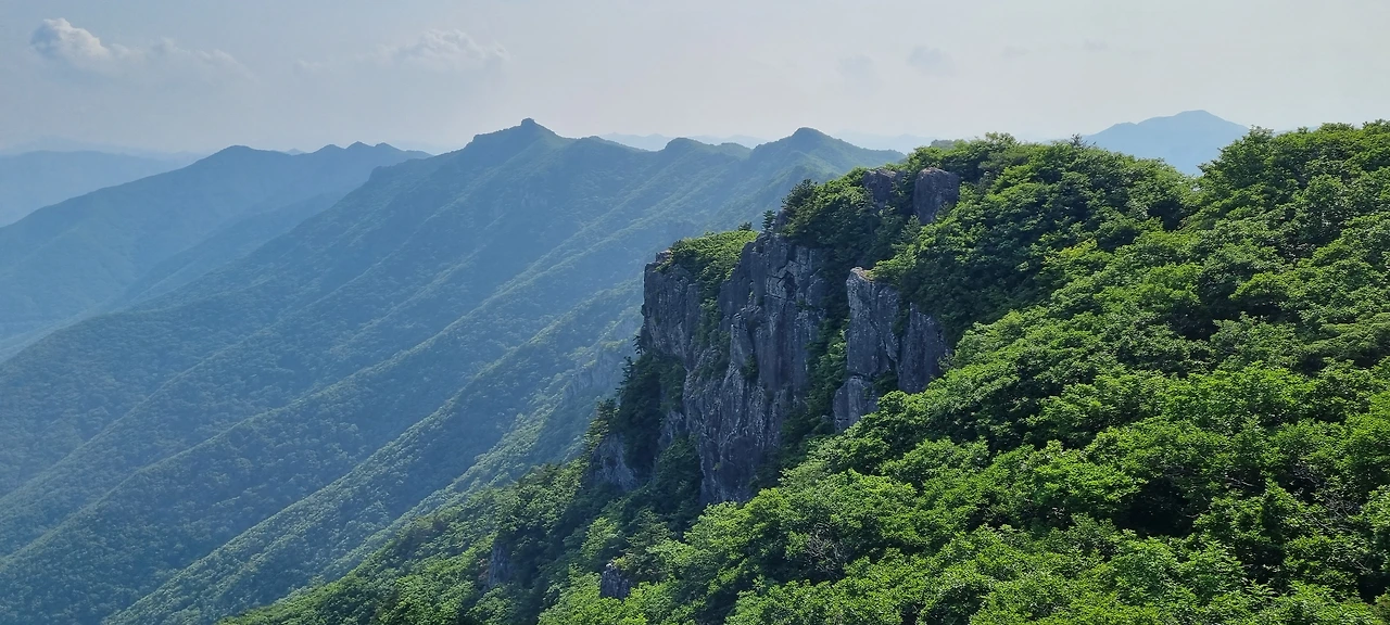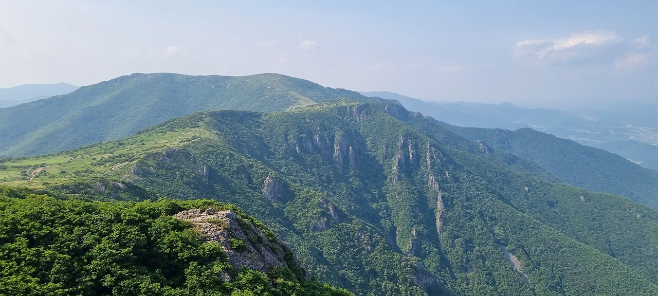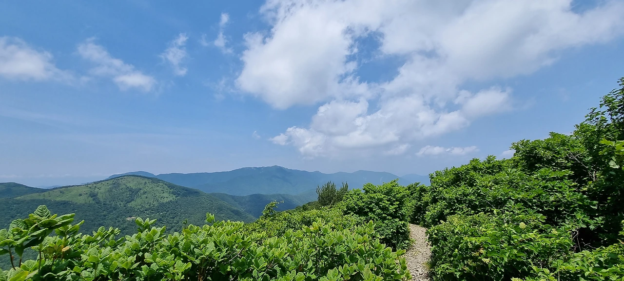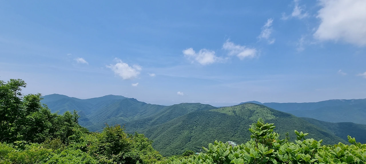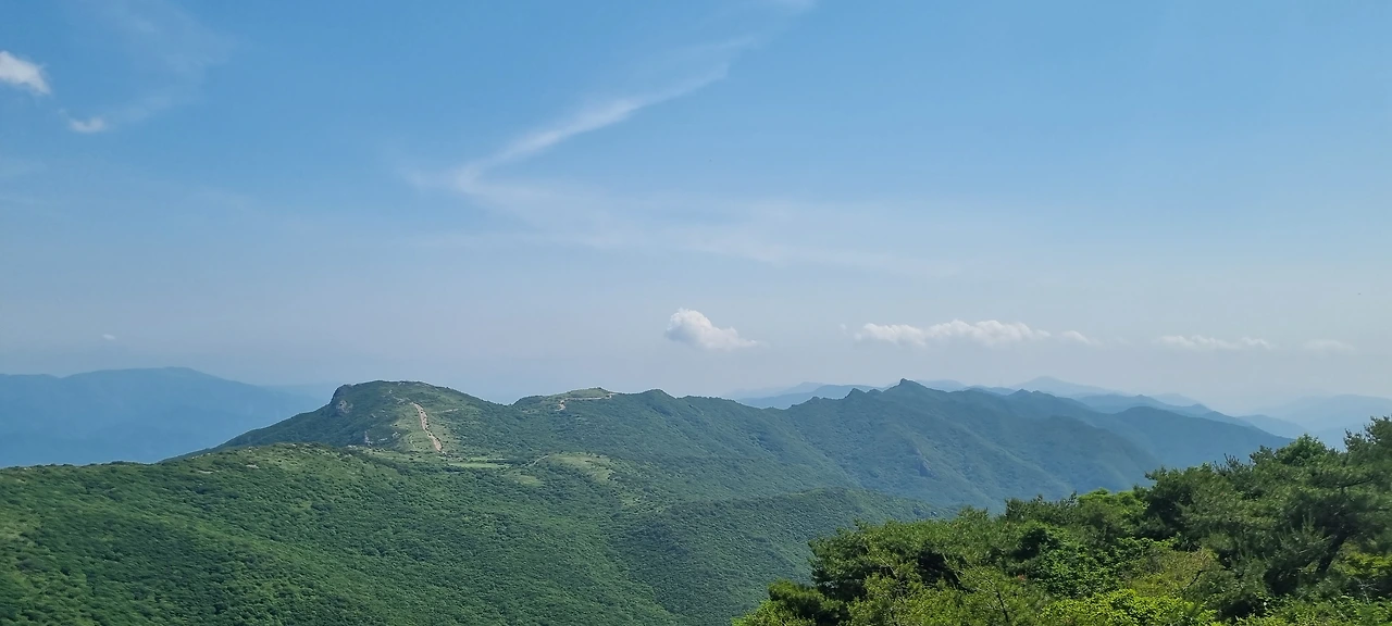 영축산을 오르고 지금까지 온 길을 돌아본다. 그 길이 장대하다 준령들이 서 있다. 그래서 영남알프스다. 지나가는 등산객에게 인증샷을 부탁하고 나의 하루를 돌아본다. 햇빛이 강하여도 그늘에 앉기보다는 그냥 앉아서 쉰다. 시원한 바람이 땀을 식혀준다. 이제는 하산을 하여야 한다. 오른쪽으로 가면 함박등, 극락암을 거쳐서 통도사도 볼 수 있고 왼쪽으로 내려가면 지산마을로 내려간다. 지산마을로 가기 전 통도사를 갔다 올 수도 있다. 하지만, 오늘은 통도사는 가지 않고 그대로 내려가서 쉬어볼 것이다. 함박등, 극락암을 친구들과 같이 걸어본 기억이 있다. 그곳도 내려가는 길이 가파르고 지산마을로 내려가는 길도 가파르다. 산행을 시작할 때 산행대장이 영축산에서 지산마을로 내려가는 길에서 등산로를 잘못 갈 수 있으므로 조심하라고 하였다. 중간중간에 임도가 있는데 이를 따라가면 다른 곳으로 간다. 임도가 아닌 바로 직선으로 내려오는 길을 찾아 내려온다. 8부 능선 쯔음에는 산장도 있다. 그곳까지 자동차도 올라온다. 산장을 벗어나 내려간다.